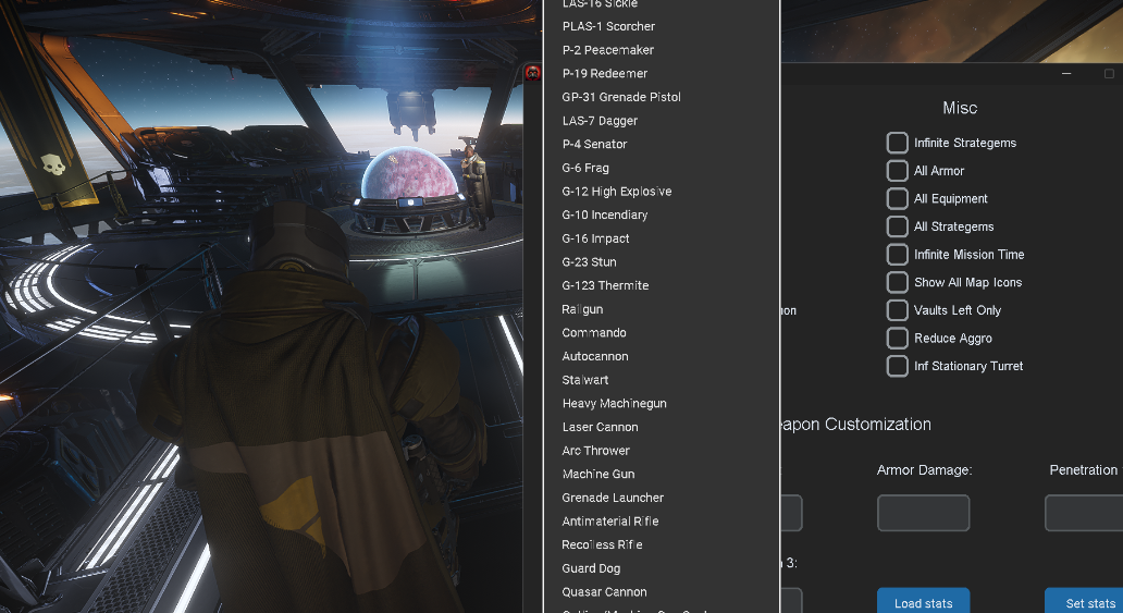 replyreload += ',' + 2344442; 使用方法 1.打開Helldivers 2 Havoc Hub v1.0.5.exe 2.點選 "select Executable",選擇-遊戲目錄裡的helldivers2.exe 3.點選 “start game” 4.按Insert顯示菜單 武器 ID 以下是