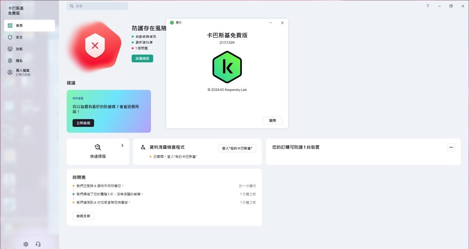 replyreload += ',' + 2345060; 【軟體名稱】KasperskyFree 【軟體版本】v21.17.7.539 免費防毒 【版本類型】Free 【軟體介紹】 1. 可以於連網狀況下進行安裝 2. 執行 FSP21.17.7.539.0.157.0T.exe 檔案,並選擇