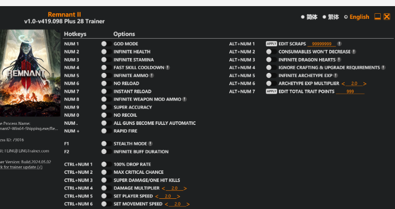 replyreload += ',' + 2345626; 選項 數字鍵 1 – 上帝模式 數字鍵 2 – 無限生命值 數字鍵 3 – 無限耐力 數字 鍵 4 – 快速技能冷卻 數字鍵 5 – 無限彈藥 數字鍵 6 – 無需裝彈 數字鍵 7 – 即時裝彈 數字鍵8
