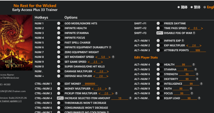 replyreload += ',' + 2345880; 33 選項 · 遊戲版本:搶先體驗+ · 最後更新:2024.05.06 邪惡的訓練家沒有休息/作弊選項 數字鍵 1 – 上帝模式/忽略命中 數字鍵 2 – 無限生命值 數字鍵 3 - 無限耐力 數字鍵 4