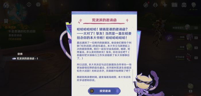 任務1-不是普通的虹色巡回活動開啟後,查看邀請函,點擊接受邀請。