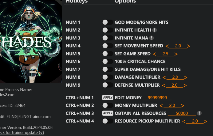 replyreload += ',' + 2345997;13 選項 · 遊戲版本:搶先體驗+ · 最後更新:2024.05.08 數字鍵 1 – 上帝模式/忽略命中 數字鍵 2 – 無限生命值 數字鍵 3 - 無限法力 數字鍵 4 – 設定移動速度 數字鍵 5 –