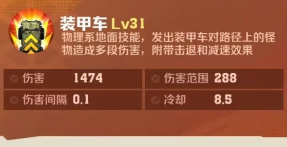 ### 裝甲車的合成路徑和詞條詳解 裝甲車的進化過程涉及多個階段,每一階段都能夠為裝甲車帶來不同的增強效果: 1. **急速衝鋒**:增加裝甲車的移動速度15%,同時降低冷卻時間25%。 2. **勢不可擋**:提高裝甲