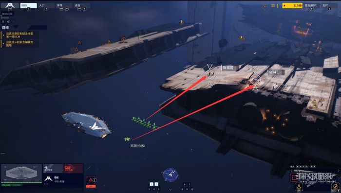 任務03-小凱蘇拉派一艘資源控制船前往占領GCM1,派戰鬥艦船前往占領數據塔。同時,還應派一些資源控制船去采集資源,一邊完成任務一邊造更多的艦船,以對付大量的敵人。