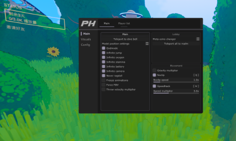 replyreload += ',' + 2348171; 注意: - 偶爾會崩潰 功能: 主要功能: - 傳送至潛水鐘 - 模型位置(僅影響其他玩家) - 隨機化模型位置(將伺服器端模型位置設定為您周圍範圍內的隨機位置) - 隱藏模型(隱身
