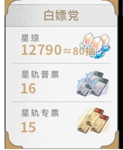 ## 崩壞星穹鐵道2.3星瓊獲取攻略 ### 星瓊總數概覽 在2.3版本中,不同類型的玩家可以獲得的星瓊總數如下: - 白嫖黨:95抽 - 小月卡黨:118抽 - 大月卡黨:127抽 在上半版本(流螢,阮·梅)中: - 白嫖黨可以獲