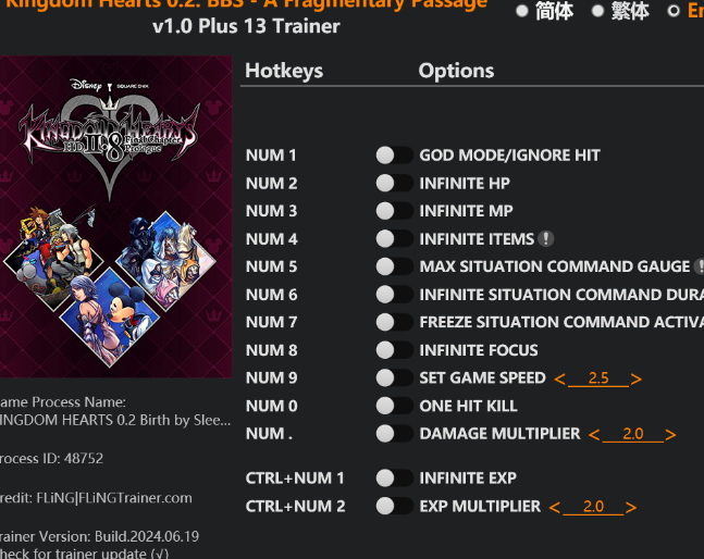 replyreload += ',' + 2349547; 13個選項·遊戲版本:v1.0+·最後更新:2024.06.19 王國之心0.2:夢中降生-碎片通道 選項 數字鍵 1 – 上帝模式/忽略命中 數字鍵 2 - 無限 HP 數字鍵 3 - 無限 MP 數字鍵 4 -
