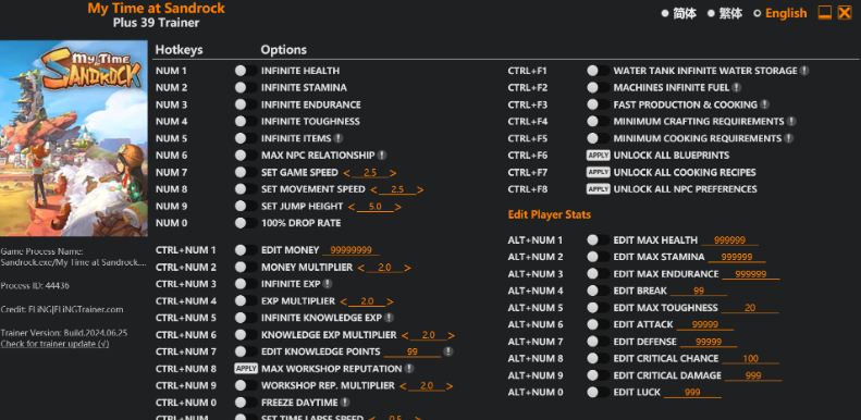 replyreload += ',' + 2350111;39個選項 · 遊戲版本:v1.0-1.3.1+ · 最後更新:2024.06.25 我在 Sandrock 的時光 訓練家/CheatOPTIONS 數字 1 – 無限生命值 數字鍵 2 - 無限耐力 數字鍵 3 - 無限耐力 數字鍵 4