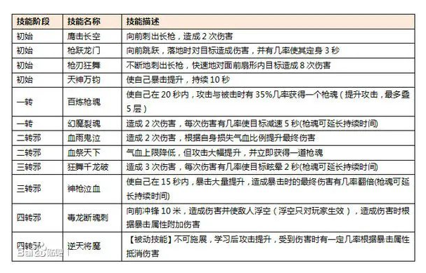 #### 邪槍技能 - **邪槍氣功**: 主要提升爆發力和傷害輸出。 - **槍客特點**: 狂戰士風格,血越少傷害越高,暴擊傷害高,爆發力強,同戰力下可以秒殺對手。 #### 技能搭配建議 1. **PK的搭配建議**: &nb