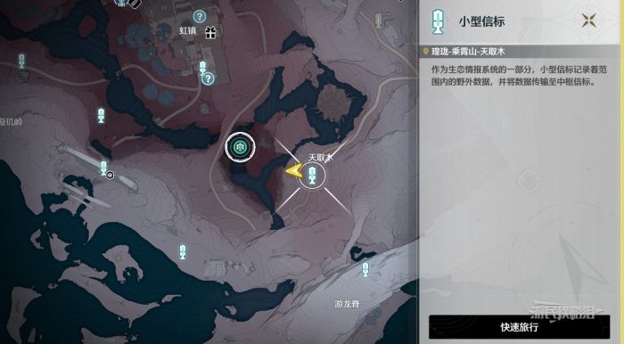 瀑布彙流之地※此任務的光線連通需要高低移動,並且附近有許多怪,建議先把附近的怪清一清再做任務。傳送到乘霄山天取木小型信標,前往任務目標位置。