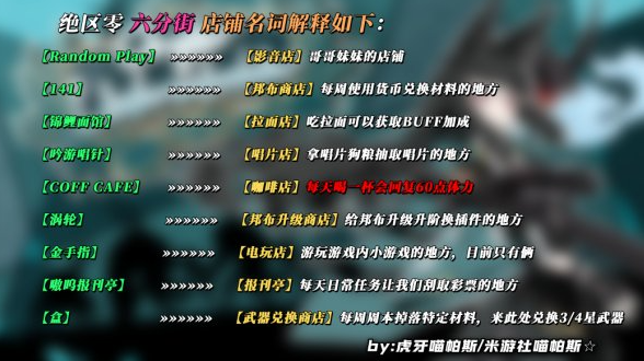 正文摘要:【絕區零設施建築作用大揭秘!新手必看攻略】 絕區零雖然不是開放世界探索遊戲,但也有豐富的建築設施供玩家使用。本文將為大家深入解析絕區零中各種設施建築的作用,幫助新手玩家快速上手! 六分街 - 玩家主要活動區域 六分街是玩家在絕區零中的主要活動區域,這裡集中了許多重要的店鋪設施: 1. 報停 - 完成日常任務的地方 2. 咖啡廳 - 補充體力的好去處 3. 商店 - 購買各種道具和材料 4. 邦布升級商店 - 升級邦布的唯一場所 重要店鋪設施詳解 1. Random Play(影音店) - 哥哥妹妹的店鋪 2. 141(邦布商店) - 每週用貨幣兌換材料 3. 錦鯉面館(拉面店) - 吃拉面獲得BUFF加成 4. 吟遊唱針(唱片店) - 用唱片狗糧抽取唱片 5. COFF CAFE(咖啡店) - 每天喝咖啡回復60點體力 6. 渦輪(邦布升級商店) - 升級邦布、更換插件 7. 金手指(電玩店) - 玩遊戲內小遊戲 8. 嗷嗚報刊亭(報刊亭) - 完成日常刮彩票任務 9. 盒(武器兌換商店) - 用周本材料兌換武器 其他重要設施解析 1. EVENTS - 查看限時和常駐活動 2. 調頻 - 抽取角色/武器/邦布的卡池 3. 麗都城募 - 購買大月卡 4. 代理人 - 查看角色技能和裝備 5. 繩網 - 查看和接取任務 6. 家庭活動日程 - 查看日常任務 7. VR測試機 - 刷取各種升級材料 8. 工作台 - 查看遊戲圖鑒 9. 空洞深潛系統 - 進行主線和支線任務 10. 零號空洞 - 類似肉鴿玩法 11. 式輿防衛戰 - 深淵玩法,獲取菲林 設施建築作用對比 店鋪設施:主要用於日常補給和資源兌換 其他設施:主要用於遊戲核心玩法和角色培養 常見問題Q&A Q1:在哪裡可以升級邦布? A1:只能在渦輪(邦布升級商店)升級邦布。 Q2:每天喝咖啡可以回復多少體力? A2:在COFF CAFE每天喝一杯咖啡可以回復60點體力。 Q3:哪裡可以兌換武器? A3:在盒(武器兌換商店)可以用周本掉落的特定材料兌換3/4星武器。 👉 GM後台版 遊戲 推薦 ⬇️⬇️⬇️ 快速玩各種二次元動漫手遊app |