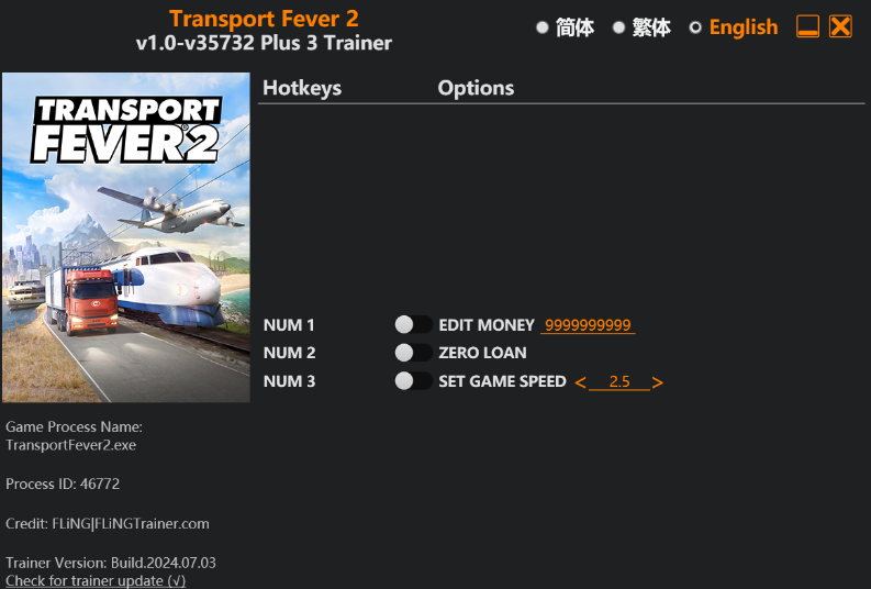 replyreload += ',' + 2350881; 3個選項·遊戲版本:v1.0-v35732+·最後更新:2024.07.03 轉移 Fever 2 訓練師/作弊選項 數字 1 – 編輯金錢 Num 2 – 零貸款 數字鍵 3 – 設定遊戲速度 所有站內附件皆會附上