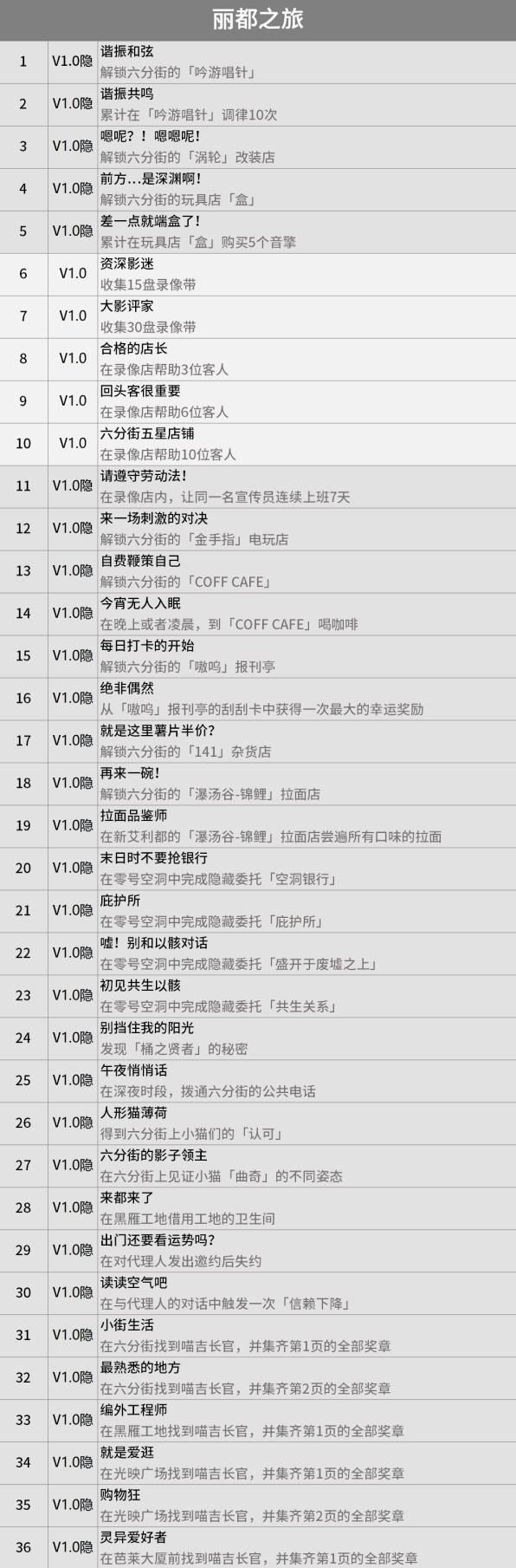 正文摘要:《絕區零》1.0版本全成就攻略與完成方法新手指南 想要在《絕區零》中收集全部成就嗎?本篇深入遊戲尋找密技,為大家帶來1.0版本的全成就一覽表與完成攻略。截至目前,遊戲共有244個成就等待玩家去挑戰。讓我們一起來看看如何才能成為成就收集大師吧! 成就分類與數量 《絕區零》的成就分為以下幾大類: 1. 麗都之旅 - 36個 成就解鎖技巧 1. 按照默認排序查找成就,方便定位 2. 優先完成主線劇情相關成就 3. 注意探索每個區域的隱藏地點 4. 挑戰不同難度的戰鬥任務 5. 培養多個角色,嘗試不同組合 新手攻略心得 1. 耐心探索每個區域,不要錯過任何細節 2. 多與NPC對話,可能觸發隱藏成就 3. 挑戰自我,嘗試高難度戰鬥 4. 收集所有可互動物品,可能隱藏彩蛋 5. 定期查看成就列表,制定完成計劃 以下廣告滑動後還有帖子內容var custom_call_MIR = function (params) {if ( params === null || params.hasAd === false ) {var divRowSide;for (let index = 0; index < ONEADs.length; index++) {if (ONEADs[index].pub.player_mode === "mobile-inread") {divRowSide = ONEADs[index].pub.slotobj;}}var ins = document.createElement('ins');ins.className = 'clickforceads';ins.setAttribute('style', 'display:inline-block;');ins.setAttribute('data-ad-zone', '18264');divRowSide.appendChild(ins);var js = document.createElement('script');js.async = true;js.type = 'text/javascript';js.setAttribute('src', '//cdn.holmesmind.com/js/init.js');js.onload = function(){console.log('[ONEAD MIR] ClickForce Loaded');};divRowSide.appendChild(js);}};var _ONEAD = {};_ONEAD.pub = {};_ONEAD.pub.slotobj = document.getElementById("oneadMIRDFPTag");_ONEAD.pub.slots = ["div-onead-ad"];_ONEAD.pub.uid = "1000509";_ONEAD.pub.external_url = "https://onead.onevision.com.tw/";_ONEAD.pub.scopes = ["spotbuy", "speed"];_ONEAD.pub.player_mode_div = "div-onead-ad";_ONEAD.pub.player_mode = "mobile-inread";_ONEAD.pub.queryAdCallback = custom_call_MIR;var ONEAD_pubs = ONEAD_pubs || [];ONEAD_pubs.push(_ONEAD);var truvidScript = document.createElement('script'); truvidScript.async = true; truvidScript.setAttribute('data-cfasync','false'); truvidScript.type = 'text/javascript'; truvidScript.src = '//stg.truvidplayer.com/index.php?sub_user_id=597&widget_id=3309&playlist_id=2381&m=a&cb=' + (Math.random() * 10000000000000000); var currentScript = document.currentScript || document.scripts[document.scripts.length - 1]; currentScript.parentNode.insertBefore(truvidScript, currentScript.nextSibling); 常見問題Q&A Q1: 如何快速解鎖成就? A1: 建議先完成主線劇情,然後按照成就分類逐一攻略。 Q2: 有哪些容易錯過的成就? A2: 通常與隱藏劇情或特定操作相關的成就較易錯過,建議仔細探索每個區域。 Q3: 成就解鎖後有什麼獎勵? A3: 除了遊戲內的成就點數,某些成就可能會解鎖特殊裝備或角色皮膚。 Q4: 難度最高的成就是哪些? A4: 通常與高難度戰鬥或需要大量時間投入的收集類成就難度較高。 Q5: 成就進度會保存嗎? A5: 是的,成就進度會自動保存到您的賬號中。 以下是成就分類對比表: | 成就類別 | 數量 | 難度評估 | |----------|------|----------| | 麗都之旅 | 36 | 中等 | | 繩匠之旅 | 34 | 中等 | | 代理人信任 | 19 | 較易 | | 法厄同紀事 | 6 | 較難 | | 代理人秘聞 | 6 | 較難 | | 零號空洞 | 52 | 困難 | | 作戰技巧 | 38 | 中等 | | 敵對目標 | 5 | 較易 | | 戰鬥成就 | 28 | 困難 | | 空洞探索指南 | 20 | 中等 | 希望這份《絕區零》1.0版本全成就攻略能幫助大家更好地享受遊戲,成為真正的成就大師!記得時常查看成就列表,制定自己的完成計劃。祝大家遊戲愉快,早日集齊所有成就! 👉 GM後台版 遊戲 推薦 ⬇️⬇️⬇️ 快速玩各種二次元動漫手遊app |