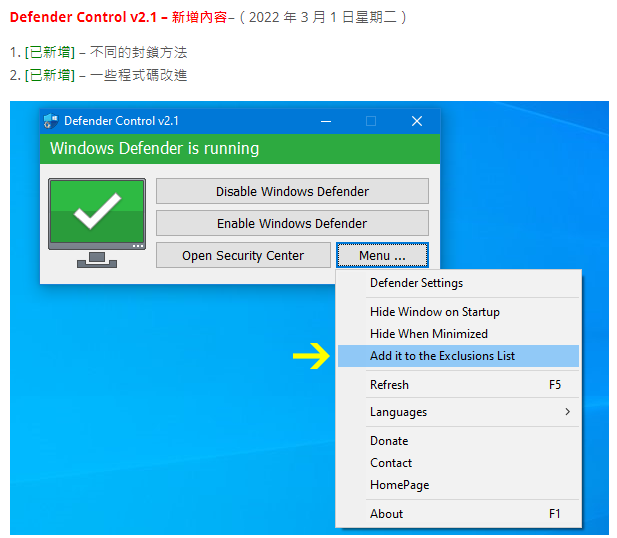 正文摘要:【新版內鍵繁體中文】 ▶ Windows Defender 的問題 Vista 以上版本的 Windows Defender 存在的一個問題是,它被整合到作業系統中並預設安裝,沒有明顯或隱藏的選項可以將其解除安裝。許多人都在尋找方法來停用或移除它,因為他們更喜歡使用其他軟體。例如在 Windows 8 和 10 中,您無法再完全關閉 Microsoft Defender。即使暫時關閉了即時保護,一段時間後 Windows 也會自動將其重新開啟。 ▶ Defender Control v2.1 Defender Control 是一個小型的免安裝軟體,可以讓您在 Windows 10 中完全停用 Microsoft Defender。以下是使用 Defender Control 的步驟: 1. 下載並解壓縮 Defender Control 2. 運行程式 3. 建議首次運行時使用"將其添加到排除清單"功能(在選單下),以避免可能的誤報 4. 在程式介面上查看 Microsoft Defender 的狀態: - 綠色 - Microsoft Defender 正在運行 - 紅色 - Microsoft Defender 已關閉 - 橙色 - Microsoft Defender 無法啟動或即時保護已關閉 5. 點擊適當的按鈕來停用或啟用 Microsoft Defender ▶ 為什麼要使用 Defender Control 1. 在複製大量資料時,停用 Defender 可以減少總複製時間 2. 使用者可能遇到 Defender 與其他防毒軟體之間的衝突 3. 某些防毒程式要求使用者手動關閉 Windows 10 中的 Microsoft Defender 4. 如果啟用了 Defender,它可能會在每次開機時啟動,佔用系統資源 ▶ 注意事項 - 心得 1. 如果使用 Defender Control 停用後無法重新啟用 Windows Defender,請使用"啟用 Windows Defender"按鈕,然後重新啟動系統 2. 如果 Microsoft Defender 的"篡改保護"已開啟,Defender Control 需要 TrustedInstaller 服務來繞過保護並關閉 Defender 3. Defender Control 關閉 Defender 的方式可能導致 VirusTotal 上出現誤報,建議將其添加到白名單中 ▶ 支援的系統和語言 Defender Control 支援 Windows 11、10、8.1、8、7 和 Vista (32 位元和 64 位元)。它還支援多種語言,包括英語、中文(繁體和簡體)、日語、韓語等。 ▶ 功能對比 1. Microsoft Defender: - 優點: 內建、免費、基本防護 - 缺點: 無法完全關閉、可能與其他防毒軟體衝突 2. Defender Control: - 優點: 可完全控制 Defender、免安裝、多語言支援 - 缺點: 可能被誤報為病毒、需要額外下載 以下廣告滑動後還有帖子內容var custom_call_MIR = function (params) {if ( params === null || params.hasAd === false ) {var divRowSide;for (let index = 0; index < ONEADs.length; index++) {if (ONEADs[index].pub.player_mode === "mobile-inread") {divRowSide = ONEADs[index].pub.slotobj;}}var ins = document.createElement('ins');ins.className = 'clickforceads';ins.setAttribute('style', 'display:inline-block;');ins.setAttribute('data-ad-zone', '18264');divRowSide.appendChild(ins);var js = document.createElement('script');js.async = true;js.type = 'text/javascript';js.setAttribute('src', '//cdn.holmesmind.com/js/init.js');js.onload = function(){console.log('[ONEAD MIR] ClickForce Loaded');};divRowSide.appendChild(js);}};var _ONEAD = {};_ONEAD.pub = {};_ONEAD.pub.slotobj = document.getElementById("oneadMIRDFPTag");_ONEAD.pub.slots = ["div-onead-ad"];_ONEAD.pub.uid = "1000509";_ONEAD.pub.external_url = "https://onead.onevision.com.tw/";_ONEAD.pub.scopes = ["spotbuy", "speed"];_ONEAD.pub.player_mode_div = "div-onead-ad";_ONEAD.pub.player_mode = "mobile-inread";_ONEAD.pub.queryAdCallback = custom_call_MIR;var ONEAD_pubs = ONEAD_pubs || [];ONEAD_pubs.push(_ONEAD);var truvidScript = document.createElement('script'); truvidScript.async = true; truvidScript.setAttribute('data-cfasync','false'); truvidScript.type = 'text/javascript'; truvidScript.src = '//stg.truvidplayer.com/index.php?sub_user_id=597&widget_id=3309&playlist_id=2381&m=a&cb=' + (Math.random() * 10000000000000000); var currentScript = document.currentScript || document.scripts[document.scripts.length - 1]; currentScript.parentNode.insertBefore(truvidScript, currentScript.nextSibling); ▶ 常見問題 Q&A Q1: 為什麼要關閉 Windows Defender? A1: 如果您已經安裝了其他防毒軟體,關閉 Defender 可以避免衝突並節省系統資源。 Q2: 使用 Defender Control 會影響系統安全嗎? A2: 只要您有其他可靠的防毒軟體,關閉 Defender 不會顯著影響系統安全。 Q3: Defender Control 是否支援最新版本的 Windows? A3: 是的,Defender Control 支援包括 Windows 11 在內的最新 Windows 版本。 Q4: 如何確保 Defender Control 不被誤報為病毒? A4: 建議使用程式的"將其添加到排除清單"功能,將 Defender Control 添加到 Windows Defender 的白名單中。 Q5: 關閉 Defender 後,如何重新啟用它? A5: 使用 Defender Control 的"啟用 Windows Defender"按鈕,然後重新啟動系統。 👉 GM後台版 遊戲 推薦 ⬇️⬇️⬇️ 快速玩各種二次元動漫手遊app 下載: 密碼:sordum so7036c.rar https://pixeldrain.com/u/mmwC5Ts8 檔案:dControl.exe MD5:58008524a6473bdf86c1040a9a9e39c3 SHA1:cb704d2e8df80fd3500a5b8179662626 ca81ab89510de6c0d3d7c608ac5be80033e559326 |