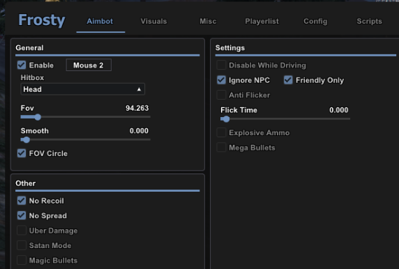 replyreload += ',' + 2352514; **備註:** * 由於該作弊程序是內部程序,因此您需要使用dll注入器才能使用。 * 玩家列表和指令碼選項卡目前為空,我還在開發中。 * 組態檔案儲存在:C:\\frostyproject **菜單鍵