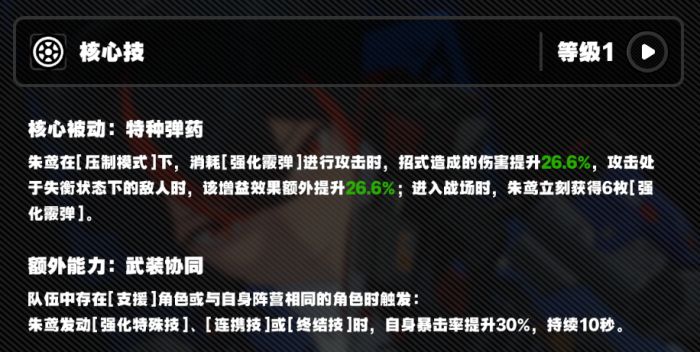 正文摘要:▶ 絕區零 朱鳶角色深度攻略與機制解析 在《絕區零》這款遊戲中,朱鳶作為一名遠程攻擊型角色,擁有獨特的輸出機制和戰鬥風格。本攻略將為新手玩家深入剖析朱鳶的核心技能、強化霰彈機制以及最佳輸出手法,幫助您更好地掌握這位強力角色。 ▶ 絕區零 朱鳶核心技能解析 朱鳶的核心技能主要圍繞著「強化霰彈」這一獨特機制展開: 1. 戰鬥開始時,朱鳶會自動裝填6枚強化霰彈。 2. 使用蓄力攻擊時,朱鳶會進入「壓制模式」,消耗強化霰彈造成以太屬性傷害。 3. 在壓制模式下,朱鳶的招式傷害倍率會獲得提升。 4. 對處於失衡狀態的敵人,朱鳶造成的傷害倍率會翻倍。 5. 當隊伍中存在「支援」類型或同陣營角色時,朱鳶使用強化特殊技、連攜技和終結技時會獲得大幅暴擊率提升。 ▶ 絕區零 朱鳶強化霰彈機制詳解 強化霰彈是朱鳶輸出的核心,了解其機制對於發揮角色最大威力至關重要: 1. 強化霰彈上限為9枚,當前彈藥數量會顯示在角色頭像下方。 2. 獲取強化霰彈的方式: - 普通攻擊的第4、第5段各+1枚 - 極限閃避後+1枚 - 使用強化特殊技、連攜技、終結技、極限支援各+3枚 3. 普通攻擊共有5段傷害,其中第2、4、5段為以太屬性傷害,其餘為物理屬性傷害。 4. 通常3輪普通攻擊加1次強化特殊技即可填滿霰彈。 ▶ 絕區零 朱鳶最佳輸出手法 為了最大化朱鳶的輸出效果,建議採用以下循環: 1. 常規循環: - 普通攻擊填充霰彈至6枚 - 使用強化特殊技+3枚,填滿9枚 - 在10秒內全部打出 2. 失衡期循環: - 普通攻擊填充霰彈至6枚 - 觸發連攜技+3枚,填滿9枚 - 全部打出後 - 使用終結技(若宣響值滿)+3枚 - 使用強化特殊技+3枚 - 全部打出 ▶ 絕區零 朱鳶配隊建議 為了充分發揮朱鳶的潛力,建議在隊伍中搭配以下類型角色: 1. 支援類型角色:可以觸發朱鳶的被動加成,提升暴擊率。 2. 同陣營角色:同樣可以觸發朱鳶的被動加成。 3. 以太屬性角色:與朱鳶的以太屬性傷害形成協同效應。 4. 擅長破防的角色:幫助朱鳶更快將敵人打入失衡狀態,發揮最大輸出。 ▶ 絕區零 朱鳶使用小技巧 1. 注意與敵人的距離:作為遠程角色,過遠的距離會導致傷害衰減。 2. 集中輸出時機:盡量在敵人失衡期間集中使用強化霰彈,最大化傷害。 3. 靈活運用QTE:在後台時可通過QTE入場觸發連攜技,快速填充霰彈。 4. 保持霰彈循環:持續使用普通攻擊和強化特殊技,保持霰彈數量。 ▶ 絕區零 朱鳶技能對比 以下是朱鳶主要技能的對比: 普通攻擊: - 優點:可持續輸出,積累霰彈 - 缺點:單次傷害較低 強化特殊技: - 優點:快速填充3枚霰彈,提升暴擊率 - 缺點:冷卻時間較長 連攜技: - 優點:快速填充3枚霰彈,可從後台切入 - 缺點:需要特定條件觸發 終結技: - 優點:大範圍高傷害,填充3枚霰彈 - 缺點:需要積累宣響值 ▶ 絕區零 朱鳶常見問題Q&A 以下廣告滑動後還有帖子內容var custom_call_MIR = function (params) {if ( params === null || params.hasAd === false ) {var divRowSide;for (let index = 0; index < ONEADs.length; index++) {if (ONEADs[index].pub.player_mode === "mobile-inread") {divRowSide = ONEADs[index].pub.slotobj;}}var ins = document.createElement('ins');ins.className = 'clickforceads';ins.setAttribute('style', 'display:inline-block;');ins.setAttribute('data-ad-zone', '18264');divRowSide.appendChild(ins);var js = document.createElement('script');js.async = true;js.type = 'text/javascript';js.setAttribute('src', '//cdn.holmesmind.com/js/init.js');js.onload = function(){console.log('[ONEAD MIR] ClickForce Loaded');};divRowSide.appendChild(js);}};var _ONEAD = {};_ONEAD.pub = {};_ONEAD.pub.slotobj = document.getElementById("oneadMIRDFPTag");_ONEAD.pub.slots = ["div-onead-ad"];_ONEAD.pub.uid = "1000509";_ONEAD.pub.external_url = "https://onead.onevision.com.tw/";_ONEAD.pub.scopes = ["spotbuy", "speed"];_ONEAD.pub.player_mode_div = "div-onead-ad";_ONEAD.pub.player_mode = "mobile-inread";_ONEAD.pub.queryAdCallback = custom_call_MIR;var ONEAD_pubs = ONEAD_pubs || [];ONEAD_pubs.push(_ONEAD);var truvidScript = document.createElement('script'); truvidScript.async = true; truvidScript.setAttribute('data-cfasync','false'); truvidScript.type = 'text/javascript'; truvidScript.src = '//stg.truvidplayer.com/index.php?sub_user_id=597&widget_id=3309&playlist_id=2381&m=a&cb=' + (Math.random() * 10000000000000000); var currentScript = document.currentScript || document.scripts[document.scripts.length - 1]; currentScript.parentNode.insertBefore(truvidScript, currentScript.nextSibling); Q1: 朱鳶的強化霰彈最多可以儲存多少枚? A1: 朱鳶的強化霰彈最多可以儲存9枚。 Q2: 如何快速填滿朱鳶的強化霰彈? A2: 最快的方法是使用3輪普通攻擊加1次強化特殊技,即可填滿9枚強化霰彈。 Q3: 朱鳶的輸出循環應該如何安排? A3: 建議先積累強化霰彈,然後在敵人進入失衡狀態時集中使用,以最大化傷害輸出。 Q4: 朱鳶適合搭配什麼類型的隊友? A4: 朱鳶適合搭配支援類、同陣營、以太屬性或擅長破防的角色,以充分發揮她的潛力。 Q5: 使用朱鳶時應該注意什麼? A5: 應注意與敵人的距離,保持適當的拉扯,並集中在敵人失衡期間輸出,同時要持續積累強化霰彈。 👉 GM後台版 遊戲 推薦 ⬇️⬇️⬇️ 快速玩各種二次元動漫手遊app |