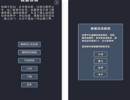 replyreload += ',' + 2353273; 免廣告獲得獎勵 《修仙模擬器一我要修真》是一款玩家可 以在手機上自己製作遊戲的重生類修仙 文字遊戲。 這並不是一款傳統的手游,這是一款偽 裝成遊戲的遊戲纟扁輯器,你可以在這