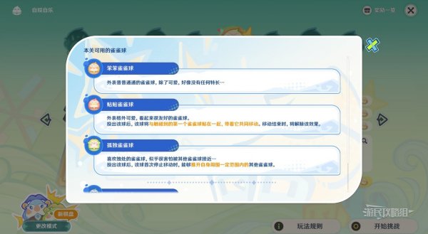正文摘要:▶ 原神|新手開局攻略:哐哐當當雀雀球第三天攻略心得 在這篇深入遊戲尋找密技的文章中,我們將為各位玩家解析原神4.8版本中"哐哐當當雀雀球"活動的第三天攻略。這個有趣的小遊戲考驗著玩家的技巧和策略,讓我們一起來探索如何獲得滿獎勵吧! ▶ 原神|第五關:呆呆站崗的氣氣團雀 挑戰目標: 將1/2/3個敵對球擊出得分區 可用雀雀球: 以下廣告滑動後還有帖子內容var custom_call_MIR = function (params) {if ( params === null || params.hasAd === false ) {var divRowSide;for (let index = 0; index < ONEADs.length; index++) {if (ONEADs[index].pub.player_mode === "mobile-inread") {divRowSide = ONEADs[index].pub.slotobj;}}var ins = document.createElement('ins');ins.className = 'clickforceads';ins.setAttribute('style', 'display:inline-block;');ins.setAttribute('data-ad-zone', '18264');divRowSide.appendChild(ins);var js = document.createElement('script');js.async = true;js.type = 'text/javascript';js.setAttribute('src', '//cdn.holmesmind.com/js/init.js');js.onload = function(){console.log('[ONEAD MIR] ClickForce Loaded');};divRowSide.appendChild(js);}};var _ONEAD = {};_ONEAD.pub = {};_ONEAD.pub.slotobj = document.getElementById("oneadMIRDFPTag");_ONEAD.pub.slots = ["div-onead-ad"];_ONEAD.pub.uid = "1000509";_ONEAD.pub.external_url = "https://onead.onevision.com.tw/";_ONEAD.pub.scopes = ["spotbuy", "speed"];_ONEAD.pub.player_mode_div = "div-onead-ad";_ONEAD.pub.player_mode = "mobile-inread";_ONEAD.pub.queryAdCallback = custom_call_MIR;var ONEAD_pubs = ONEAD_pubs || [];ONEAD_pubs.push(_ONEAD);var truvidScript = document.createElement('script'); truvidScript.async = true; truvidScript.setAttribute('data-cfasync','false'); truvidScript.type = 'text/javascript'; truvidScript.src = '//stg.truvidplayer.com/index.php?sub_user_id=597&widget_id=3309&playlist_id=2381&m=a&cb=' + (Math.random() * 10000000000000000); var currentScript = document.currentScript || document.scripts[document.scripts.length - 1]; currentScript.parentNode.insertBefore(truvidScript, currentScript.nextSibling); 對比表格: 項目第五關第六關名稱呆呆站崗的氣氣團雀迷迷糊糊的三角陣型目標將1/2/3個敵對球擊出得分區獲取得分12/14/18主要策略利用角度或力度控制擊出敵對球將球帶入高分區域最大化得分關鍵雀雀球貼貼球、孤獨球貼貼球、華麗球難點精準控制角度和力度控制力度避免球彈出得分區 常見問題Q&A: Q1: 在第五關中,如果第一次沒有成功將兩個敵對球都擊出怎麼辦? A1: 不用擔心,可以重新嘗試。調整貼貼球的位置和角度,確保與兩個目標敵對球在一條直線上,然後再次使用最大力度擊球。 Q2: 第六關中,如何確保球不會從得分區彈出? A2: 控制好力度是關鍵。當瞄準紅色高分區時,使用適中偏少的力度。如果擔心失誤,可以選擇將球打入黃色得分區,這樣更容易控制。 Q3: 在第六關中,如果前面的操作都失誤了,還有機會達成目標嗎? A3: 是的,還有機會。可以利用華麗球的特性來彌補。將華麗球打入黃色得分區,它會吸引其他普通球,幫助你獲得更多分數。 Q4: 貼貼球和孤獨球的特性有什麼不同? A4: 貼貼球可以黏住其他球一起移動,適合精確控制和將球帶入特定區域。孤獨球則有推開其他球的效果,適合清理障礙或將多個球分散。 Q5: 如何在第六關中最大化得分? A5: 盡量將球打入紅色高分區。如果難度太大,可以先瞄準黃色得分區。最後,利用華麗球的吸引效果,將剩餘的球吸入高分區域。 希望這篇攻略能幫助大家在原神的哐哐當當雀雀球活動中取得好成績!祝大家遊戲愉快,獎勵滿滿! 👉 GM後台版 遊戲 推薦 ⬇️⬇️⬇️ 快速玩各種二次元動漫手遊app |