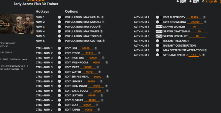 replyreload += ',' + 2354963; 30 選項 · 遊戲版本:搶先體驗+ · 最後更新:2024.08.11 新的自行車訓練器/作弊選項 數字 1 - 人口:最大生命值 數字鍵 2 - 人口:士氣最高 數字鍵 3 - 人口:最大食物數 數字