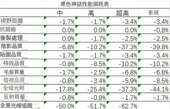 正文摘要:▶ 《黑神話悟空》新手開局攻略:畫面設置深入解析 在《黑神話悟空》這款備受期待的遊戲中,玩家可以根據自己的需求和硬體配置調整畫面設置,以達到最佳的遊戲體驗。本文將為各位玩家深入解析畫面設置對遊戲性能的影響,幫助大家在視覺效果和流暢度之間找到最佳平衡點。 ▶ 《黑神話悟空》畫面設置性能損耗表解讀 讓我們仔細分析一下《黑神話悟空》的畫面設置性能損耗表: 這張表格清楚地展示了不同畫面設置選項對遊戲幀數的影響程度。從左到右分別是設置選項、性能損耗程度以及具體的幀數損耗。這些數據對於想要優化遊戲效能的玩家來說非常有價值。 ▶ 《黑神話悟空》畫面設置選項詳解 1. 陰影品質:對性能影響較大,可能會降低4-8幀。 2. 景深:影響適中,約降低2-4幀。 3. 動態模糊:影響較小,僅降低1-2幀。 4. 光線散射:影響適中,約降低2-4幀。 5. 體積霧:影響較大,可能降低3-6幀。 6. 體積雲:影響極大,可能降低5-10幀。 7. 全域光照品質:影響較大,可能降低3-6幀。 8. 反射品質:影響適中,約降低2-4幀。 9. 植被品質:影響較大,可能降低3-6幀。 10. 材質品質:影響適中,約降低2-4幀。 ▶ 《黑神話悟空》畫面設置推薦 根據性能損耗表,我們可以為不同需求的玩家提供以下建議: 1. 追求極致畫質:若您的硬體配置足夠強大,可以將所有選項調至最高,體驗遊戲最佳視覺效果。 2. 平衡畫質與效能: - 將陰影品質、體積霧、體積雲和植被品質調低一個等級。 - 保持全域光照品質在中等或以上。 - 其他選項可以根據個人喜好調整。 3. 注重流暢度: - 將體積雲、陰影品質和植被品質調至低或關閉。 - 將全域光照品質調至中等。 - 可以考慮關閉或降低動態模糊和景深效果。 4. 低配置設備: - 將大部分選項調至低或關閉。 - 優先保留材質品質和反射品質在中等,以確保基本視覺效果。 以下廣告滑動後還有帖子內容var custom_call_MIR = function (params) {if ( params === null || params.hasAd === false ) {var divRowSide;for (let index = 0; index < ONEADs.length; index++) {if (ONEADs[index].pub.player_mode === "mobile-inread") {divRowSide = ONEADs[index].pub.slotobj;}}var ins = document.createElement('ins');ins.className = 'clickforceads';ins.setAttribute('style', 'display:inline-block;');ins.setAttribute('data-ad-zone', '18264');divRowSide.appendChild(ins);var js = document.createElement('script');js.async = true;js.type = 'text/javascript';js.setAttribute('src', '//cdn.holmesmind.com/js/init.js');js.onload = function(){console.log('[ONEAD MIR] ClickForce Loaded');};divRowSide.appendChild(js);}};var _ONEAD = {};_ONEAD.pub = {};_ONEAD.pub.slotobj = document.getElementById("oneadMIRDFPTag");_ONEAD.pub.slots = ["div-onead-ad"];_ONEAD.pub.uid = "1000509";_ONEAD.pub.external_url = "https://onead.onevision.com.tw/";_ONEAD.pub.scopes = ["spotbuy", "speed"];_ONEAD.pub.player_mode_div = "div-onead-ad";_ONEAD.pub.player_mode = "mobile-inread";_ONEAD.pub.queryAdCallback = custom_call_MIR;var ONEAD_pubs = ONEAD_pubs || [];ONEAD_pubs.push(_ONEAD);var truvidScript = document.createElement('script'); truvidScript.async = true; truvidScript.setAttribute('data-cfasync','false'); truvidScript.type = 'text/javascript'; truvidScript.src = '//stg.truvidplayer.com/index.php?sub_user_id=597&widget_id=3309&playlist_id=2381&m=a&cb=' + (Math.random() * 10000000000000000); var currentScript = document.currentScript || document.scripts[document.scripts.length - 1]; currentScript.parentNode.insertBefore(truvidScript, currentScript.nextSibling); ▶ 《黑神話悟空》畫面設置對比表 | 設置選項 | 高品質效果 | 低品質效果 | 性能影響 | | 陰影品質 | 陰影細緻逼真 | 陰影粗糙或缺失 | 較大 | | 景深 | 遠景模糊自然 | 無景深效果 | 中等 | | 動態模糊 | 運動畫面更流暢 | 無模糊效果 | 較小 | | 光線散射 | 光源效果真實 | 光線效果單一 | 中等 | | 體積霧 | 霧氣效果逼真 | 無霧氣或效果簡單 | 較大 | | 體積雲 | 雲層豐富立體 | 雲層扁平或缺失 | 極大 | | 全域光照品質 | 光影效果自然 | 光影效果平淡 | 較大 | | 反射品質 | 物體表面反光真實 | 反光效果簡單 | 中等 | | 植被品質 | 植物細節豐富 | 植物簡化或稀疏 | 較大 | | 材質品質 | 物體表面細節清晰 | 材質模糊或失真 | 中等 | ▶ 《黑神話悟空》畫面設置常見問題Q&A Q1: 哪些設置對遊戲性能影響最大? A1: 根據性能損耗表,體積雲、陰影品質和植被品質對性能的影響最大,調整這些選項可以顯著提升幀數。 Q2: 如何在保證畫質的同時提升遊戲流暢度? A2: 可以考慮將體積雲和陰影品質稍微調低,同時保持全域光照和材質品質在較高水平,這樣可以在視覺效果和性能之間取得較好的平衡。 Q3: 動態模糊是否值得開啟? A3: 動態模糊對性能影響較小,但能增加遊戲畫面的流暢感。如果您不介意這種效果,可以保持開啟狀態。 Q4: 為什麼調整全域光照品質這麼重要? A4: 全域光照品質對整體畫面的光影效果影響重大,它能為遊戲環境帶來更自然、逼真的光線效果。雖然對性能有一定影響,但對提升遊戲視覺體驗非常重要。 Q5: 低配置電腦應該如何設置才能流暢運行《黑神話悟空》? A5: 低配置電腦可以考慮關閉或降低體積雲、陰影品質、植被品質等高耗能選項,同時將全域光照和材質品質保持在中等水平,以確保基本的視覺效果和遊戲流暢度。 《黑神話悟空》的畫面設置為玩家提供了豐富的自定義選項,讓每個人都能根據自己的硬體配置和個人喜好找到最適合的遊戲體驗。希望這篇深入遊戲尋找密技的攻略能夠幫助