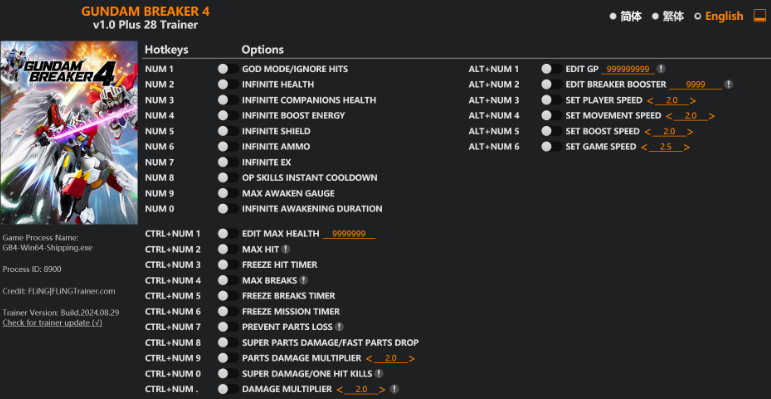 正文摘要:replyreload += ',' + 2356847; ☑️ 《鋼彈創壞者4》終極免費破解版修改器大全 各位鋼彈迷們注意啦!今天要為大家帶來《鋼彈創壞者4》(GUNDAM BREAKER 4)的超強修改器教學。這款修改器包含28個強大功能,讓你在遊戲中無往不利!不管你是想要無敵模式、無限彈藥,還是想要一擊必殺的超強傷害,這款修改器都能滿足你的需求。 ☑️ 修改器版本與遊戲相容性 - 適用遊戲版本:v1.0+ - 最後更新日期:2024年8月29日 - 修改器選項數量:28個 ☑️ 修改器功能詳解 1. 數字鍵1 – 無敵模式/無視傷害 2. 數字鍵2 – 無限生命值 3. 數字鍵3 – 隊友無限生命值 4. 數字鍵4 – 無限推進能量 5. 數字鍵5 – 無限護盾 6. 數字鍵6 – 無限彈藥 7. 數字鍵7 – 無限EX技能 8. 數字鍵8 – 超強技能瞬間冷卻 9. 數字鍵9 – 覺醒槽最大值 10. 數字鍵0 – 無限覺醒持續時間 ☑️ 進階修改選項 11. Ctrl+數字鍵1 – 編輯最大生命值 12. Ctrl+數字鍵2 – 最大HIT數 13. Ctrl+數字鍵3 – 凍結HIT計時器 14. Ctrl+數字鍵4 – 最大BREAKS數 15. Ctrl+數字鍵5 – 凍結BREAKS計時器 16. Ctrl+數字鍵6 – 凍結任務計時器 17. Ctrl+數字鍵7 – 防止零件損失 18. Ctrl+數字鍵8 – 超級零件傷害/快速零件掉落 19. Ctrl+數字鍵9 – 零件傷害倍數 20. Ctrl+數字鍵0 – 超級傷害/一擊必殺 ☑️ 客製化設定 21. Ctrl+數字鍵. – 傷害倍數調整 22. Ctrl+數字鍵+ – 防禦倍數調整 23. Alt+數字鍵1 – 編輯GP點數 24. Alt+數字鍵2 – 編輯破壞者助推器 25. Alt+數字鍵3 – 設定玩家速度 26. Alt+數字鍵4 – 設定移動速度 27. Alt+數字鍵5 – 設定推進速度 28. Alt+數字鍵6 – 設定遊戲速度 ☑️ 下載連結 所有站內附件皆會附上安全掃描報告請會員查看純淨度百分比後判斷使用(adsbygoogle = window.adsbygoogle || []).push({});相關檔案須知:取得檔案前,請先詳細閱讀文章內容避免不必要錯誤與誤會發生。也可多參考文章討論樓層內容了解附件檔案相關討論資訊。 【此文章部分內容隱藏中】 解除隱藏說明教學點擊下方 繼續閱讀文章 後請仔細觀看文章內容 並依照指示進行下一步最後完成解除隱藏後系統會回到此文章自動顯示隱藏內容~繼續閱讀 檔案名稱:GUNDAM.BREAKER.4.v1.0.Plus.28.Trainer-FLiNG.zip ☑️ 使用教學 1. 下載並解壓縮修改器檔案 2. 啟動《鋼彈創壞者4》遊戲 3. 運行修改器程式 4. 在遊戲中使用對應的按鍵組合來啟動想要的功能 ☑️ 注意事項 - 使用修改器可能會影響遊戲平衡,建議僅在單人模式中使用 - 部分功能可能會影響遊戲存檔,請謹慎使用 - 定期更新修改器以確保與最新遊戲版本相容 ☑️ 常見問題Q&A Q1:使用這個修改器會被ban嗎? A1:為了遊戲體驗和帳號安全,強烈建議只在離線單人模式中使用修改器。 Q2:修改器無法正常運作怎麼辦? A2:請確保你的遊戲版本與修改器版本相符。如果問題持續,可以嘗試以管理員身份運行修改器。 Q3:哪些功能最適合新手使用? A3:建議新手可以先嘗試無限生命值、無限彈藥等基本功能,熟悉後再探索其他進階選項。 Q4:使用修改器會影響遊戲成就嗎? A4:是的,使用修改器可能會影響部分遊戲成就的解鎖。如果你在意成就,建議在一般模式下完成後再使用修改器。 Q5:如何取消已啟動的修改器功能? A5:只需再次按下對應的按鍵組合,即可關閉該功能。 希望這份《鋼彈創壞者4》修改器教學能幫助你更好地享受遊戲樂趣。記得理性使用,保持遊戲的挑戰性和樂趣才是最重要的!祝各位鋼彈迷遊戲愉快,打造出屬於自己的最強鋼彈吧! 👉 GM後台版 遊戲 推薦 ⬇️⬇️⬇️ 快速玩各種二次元動漫手遊appreplyreload += ',' + 2356847; |