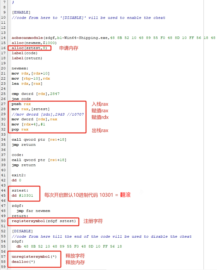 正文摘要:replyreload += ',' + 2356986; 《黑神話:悟空》《免費》修改器分享!一鍵自動棍反、變身、法寶無限使用 ☑️ 《黑神話:悟空》修改器功能介紹 本次為各位玩家帶來的《黑神話:悟空》修改器包含多項強大功能,讓您的遊戲體驗更加豐富多彩!以下是主要功能概述: 1. 自動棍反:開啟後可自動進行棍反動作,但請注意同時關閉「閃身無時機要求」功能,以避免原地棍反。 2. 變身功能:無需觸發條件即可隨意變身,且不消耗能量。 3. 法寶使用:可無限次數使用各種法寶。 4. 強化攻擊:劈棍、立棍、戳棍等攻擊招式都可使用4豆威力。 5. 筋斗雲:快速移動的必備技能。 ☑️ 修改器使用方法 1. 下載並安裝Cheat Engine(CE修改器)7.5 繁體中文版。 2. 下載本文提供的修改器檔案「b1-Win64-Shipping (2).CT」。 3. 使用CE修改器開啟該檔案,並將其與遊戲連結。 4. 在修改器介面中選擇所需功能並啟用。 ☑️ 自訂修改提示 腳本內的ID為16進位制,您也可以參考下方圖片進行自訂修改。這讓您能夠更靈活地調整修改器功能,以符合個人遊戲風格和需求。 ☑️ 常見問題Q&A Q1:使用修改器會影響遊戲存檔嗎? A1:大部分功能不會影響存檔,但解鎖全部土地廟功能可能會造成存檔問題,使用前請務必備份。 Q2:為什麼我無法使用自動棍反功能? A2:請確認是否同時開啟了「閃身無時機要求」功能。建議關閉該功能以正常使用自動棍反。 Q3:修改器支援哪些遊戲版本? A3:目前僅支援Steam 1.0.8版本,其他版本可能無法正常使用。 Q4:使用修改器會被遊戲官方發現嗎? A4:修改器主要用於單機遊戲體驗,不會影響其他玩家。但仍建議謹慎使用,避免影響遊戲平衡。 Q5:如何正確設定自在極意功方向? A5:首先輸入一次其他指令,預設方向為後退。之後可根據需求自行調整。 👉 GM後台版 遊戲 推薦 ⬇️⬇️⬇️ 快速玩各種二次元動漫手遊app 代碼: 10095:聚形散氣(無隱身) 10096:破隱一擊 10201:上觔斗雲(10201-10204) 10211:下觔斗雲(10211-10226) 10301:翻滾(10301-10305) 10311:閃避 10412:變身(狼)赤潮 10413:變身(石)碧塵 10414:變身(虎)烏川 10415:變身(鼠)灰蟄 10416:變身(蛸)皓霜 10417:變身(猴)玄淵 10418:變身(蟲)藕雹 10419:變身(龍)金嵐 10423:變身(馬)黯雷 10424:變身(猿)青穹 10425:變身(石猿)法相,退出遊戲選退出戰鬥會到小西天浮屠塔 10439:變身小狐狸 10502:江海翻 10505:銅頭鐵臂 10507:銅頭鐵臂 10509:銅頭鐵臂 10511:變身蟬 10516:身外身法 10517:閃避定身法 10518:閃避定身法 10519:閃避定身法 10520:安身法 10521:禁字法 10522:安身法 10523:大聖四段,帶音效 10530:喝藥會消耗 10531:喝藥會消耗 10532:喝藥會消耗 10533:喝藥會消耗 10534:喝藥會消耗 10535:喝藥會消耗 10536:喝藥會消耗 10560:吹毛無分身 10561:吹毛無分身 10562:吹毛無分身 10563:變身無實體 10563:變身還原動作 10601:跳踢 10602:跳很遠 10614:大重擊 10711:攪棍持續 10713:退寸 10714:進尺 10715:進尺 10720:風雲轉(危險,轉不停) 10721:風雲轉(轉一圈) 10723:風雲轉(收棍) 10724:江海翻 10751:輕棍1 10752:輕棍2 10753:輕棍3 10754:輕棍4 10755:輕棍5 10781:沖霄 10783:棍花移步 10784:方圓徑寸(小) 10785:方圓徑寸(大) 10831:劈棍(1豆) 10832:劈棍(2豆) 10833:劈棍(3豆) 10834:劈棍(4豆) 10842:原地棍花 10843:移動棍花 10861:立棍(1豆) 10862:立棍(2豆) 10863:立棍(3豆) 10864:立棍(4豆) 10869:扔棍子 10880:戳棍(1豆) 10881:戳棍(2豆) 10882:戳棍(3豆) 10883:戳棍(4豆) 10884:戳棍(80-90) 10890:戳棍(4豆) 10900:傳送時的毫毛落下 10901:傳送時的毫毛落下 10903:拔毛插香 10906:動作完成獲得法術赤潮 10909:使用縮地青符 10912:使用使用如意畫軸 10919:搖撥浪鼓 10923:按符 10929:拉鞭(拉不出) 10930:拉鞭(拉不出) 10931:拉鞭(拉不出) 10932:拉鞭(拉不出) 10933:拉鞭(拉出了沒法術) 10970:動作完成獲得法術金嵐 10973:未經點化,無法吸存精魄 10975:搖撥浪鼓 10991:使用避火罩 10992:使用定風珠 10994:使用繡花針 10995:使用芭蕉扇replyreload += ',' + 2356986; |