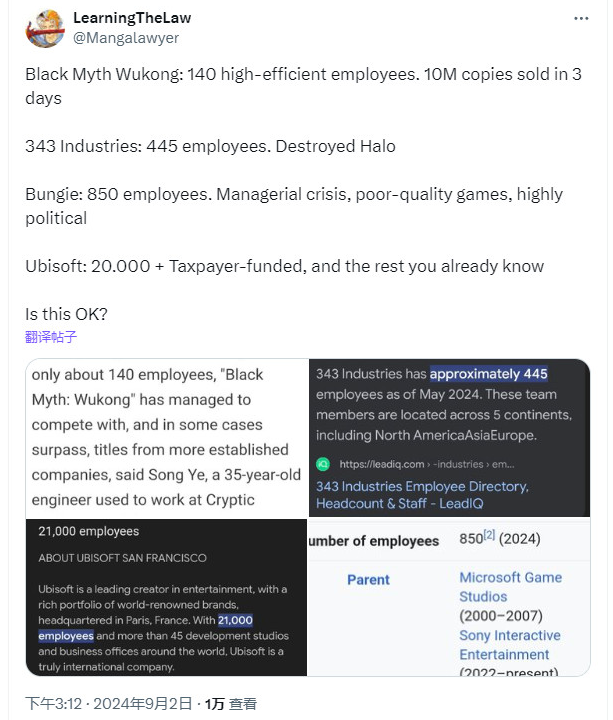 正文摘要:《黑神話:悟空》開發團隊僅140人 海外玩家讚嘆效率驚人 近日,《黑神話:悟空》再次引發熱議。海外玩家對比了《黑神話》開發商遊戲科學與國外3A工作室的員工人數,讓人不禁感嘆這家新興公司驚人的創造力! 總的來說,《黑神話:悟空》的成功再次證明,在遊戲開發中,團隊的效率和人才的質量比單純的規模更為重要。這或許能為整個遊戲行業帶來一些啟示,促使更多公司重視人才培養和團隊建設,而不是一味追求擴大規模。 以下廣告滑動後還有帖子內容var custom_call_MIR = function (params) {if ( params === null || params.hasAd === false ) {var divRowSide;for (let index = 0; index < ONEADs.length; index++) {if (ONEADs[index].pub.player_mode === "mobile-inread") {divRowSide = ONEADs[index].pub.slotobj;}}var ins = document.createElement('ins');ins.className = 'clickforceads';ins.setAttribute('style', 'display:inline-block;');ins.setAttribute('data-ad-zone', '18264');divRowSide.appendChild(ins);var js = document.createElement('script');js.async = true;js.type = 'text/javascript';js.setAttribute('src', '//cdn.holmesmind.com/js/init.js');js.onload = function(){console.log('[ONEAD MIR] ClickForce Loaded');};divRowSide.appendChild(js);}};var _ONEAD = {};_ONEAD.pub = {};_ONEAD.pub.slotobj = document.getElementById("oneadMIRDFPTag");_ONEAD.pub.slots = ["div-onead-ad"];_ONEAD.pub.uid = "1000509";_ONEAD.pub.external_url = "https://onead.onevision.com.tw/";_ONEAD.pub.scopes = ["spotbuy", "speed"];_ONEAD.pub.player_mode_div = "div-onead-ad";_ONEAD.pub.player_mode = "mobile-inread";_ONEAD.pub.queryAdCallback = custom_call_MIR;var ONEAD_pubs = ONEAD_pubs || [];ONEAD_pubs.push(_ONEAD);var truvidScript = document.createElement('script'); truvidScript.async = true; truvidScript.setAttribute('data-cfasync','false'); truvidScript.type = 'text/javascript'; truvidScript.src = '//stg.truvidplayer.com/index.php?sub_user_id=597&widget_id=3309&playlist_id=2381&m=a&cb=' + (Math.random() * 10000000000000000); var currentScript = document.currentScript || document.scripts[document.scripts.length - 1]; currentScript.parentNode.insertBefore(truvidScript, currentScript.nextSibling); 常見問題解答 Q1: 《黑神話:悟空》的開發團隊有多少人? A1: 根據報導,《黑神話:悟空》的開發團隊只有140人。 Q2: 《黑神話:悟空》在發售後的銷量如何? A2: 遊戲在發售後4天內就售出了1000萬套,展現出驚人的市場表現。 Q3: 為什麼有人認為小型開發團隊更有優勢? A3: 許多玩家認為,小型團隊更容易保持高效率和創意,能夠更好地整合遊戲各個部分,減少bug的出現。 Q4: 《黑神話:悟空》的成功對遊戲行業有何啟示? A4: 這個案例表明,在遊戲開發中,團隊效率和人才質量比單純的規模更為重要。它可能會促使更多公司重視人才培養和團隊建設。 Q5: 玩家對其他大型遊戲公司有何看法? A5: 許多玩家對一些大型遊戲公司如育碧、343等的表現表示失望,認為它們擁有龐大的團隊和資源,卻未能提供令人滿意的遊戲體驗。 👉 GM後台版 遊戲 推薦 ⬇️⬇️⬇️ 快速玩各種二次元動漫手遊app |