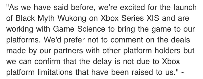 正文摘要:《黑神話:悟空》Xbox版延期內幕:微軟澄清與主機效能無關,獨佔協議傳聞引發討論 近期,備受期待的動作角色扮演遊戲《黑神話:悟空》在Xbox平台上的發行計劃引發了廣泛討論。國外知名遊戲媒體IGN和財經雜誌富比世引述消息人士的說法,指出該遊戲Xbox版本的延期並非因技術問題,而是開發商遊戲科學與索尼達成了獨佔協議。儘管多數玩家對此持懷疑態度,但Xbox最近的回應似乎為這種說法增添了一些可信度。 然而,關於《黑神話:悟空》延期的原因,遊戲科學官方的說法是基於優化考量。這使得延期的可能性縮小到兩種情況:要麼是Xbox版本確實需要更多時間進行優化,要麼就是如傳聞所說的獨佔協議影響了發行計劃。 對於期待在Xbox平台上體驗這款融合中國神話與武俠元素的動作RPG的玩家來說,這無疑是一個令人失望的消息。《黑神話:悟空》以其精美的畫面和流暢的戰鬥系統吸引了全球玩家的目光,被視為能夠與《魔物獵人》、《隻狼:暗影雙死》等知名動作遊戲系列相匹敵的作品。 以下廣告滑動後還有帖子內容var custom_call_MIR = function (params) {if ( params === null || params.hasAd === false ) {var divRowSide;for (let index = 0; index < ONEADs.length; index++) {if (ONEADs[index].pub.player_mode === "mobile-inread") {divRowSide = ONEADs[index].pub.slotobj;}}var ins = document.createElement('ins');ins.className = 'clickforceads';ins.setAttribute('style', 'display:inline-block;');ins.setAttribute('data-ad-zone', '18264');divRowSide.appendChild(ins);var js = document.createElement('script');js.async = true;js.type = 'text/javascript';js.setAttribute('src', '//cdn.holmesmind.com/js/init.js');js.onload = function(){console.log('[ONEAD MIR] ClickForce Loaded');};divRowSide.appendChild(js);}};var _ONEAD = {};_ONEAD.pub = {};_ONEAD.pub.slotobj = document.getElementById("oneadMIRDFPTag");_ONEAD.pub.slots = ["div-onead-ad"];_ONEAD.pub.uid = "1000509";_ONEAD.pub.external_url = "https://onead.onevision.com.tw/";_ONEAD.pub.scopes = ["spotbuy", "speed"];_ONEAD.pub.player_mode_div = "div-onead-ad";_ONEAD.pub.player_mode = "mobile-inread";_ONEAD.pub.queryAdCallback = custom_call_MIR;var ONEAD_pubs = ONEAD_pubs || [];ONEAD_pubs.push(_ONEAD);var truvidScript = document.createElement('script'); truvidScript.async = true; truvidScript.setAttribute('data-cfasync','false'); truvidScript.type = 'text/javascript'; truvidScript.src = '//stg.truvidplayer.com/index.php?sub_user_id=597&widget_id=3309&playlist_id=2381&m=a&cb=' + (Math.random() * 10000000000000000); var currentScript = document.currentScript || document.scripts[document.scripts.length - 1]; currentScript.parentNode.insertBefore(truvidScript, currentScript.nextSibling); 常見問題解答 1. Q: 《黑神話:悟空》的Xbox版本為何延期? A: 官方聲明是基於優化考量,但具體原因尚未完全明朗。微軟已澄清並非因Xbox主機硬體限制所致。 2. Q: 是否存在與索尼的獨佔協議? A: 目前這只是傳聞,未得到官方確認。微軟表示不願評論合作夥伴與其他平台商的協議。 3. Q: 《黑神話:悟空》的遊戲類型是什麼? A: 這是一款動作角色扮演遊戲(Action RPG),融合了中國神話與武俠元素。 4. Q: 遊戲預計何時在Xbox平台上發行? A: 目前尚未公布確切的發行日期,開發團隊表示正在進行優化工作。 5. Q: 玩家能在哪些平台上遊玩《黑神話:悟空》? A: 遊戲預計將在PlayStation 5、Xbox Series X|S和PC平台上發行,但具體發行時程可能有所不同。 👉 GM後台版 遊戲 推薦 ⬇️⬇️⬇️ 快速玩各種二次元動漫手遊app |