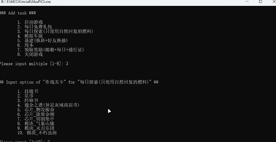 正文摘要:☑️ 強大功能一覽 1. 自動啟動遊戲 2. 領取每日免費禮包 3. 執行每日探索(僅使用自然恢復的燃料) 4. 模擬軍演(只打第一關,直到次數用完) 5. 基地管理(自動換班+好友換抽) 6. 周本挑戰(支援第一關45微晶和第五關120微晶,需提前配置好隊伍) 7. 一鍵領取獎勵(郵箱+每日+通行證) 8. 自動關閉遊戲 ☑️ 使用教學 下載連結 使用前請注意以下幾點: 1. MuMu模擬器用戶需關閉設定中的「背景掛機時保活運行」選項。 2. 執行過程中MaaPiCli視窗出現紅字是正常現象,請勿擔心。 3. 模擬器路徑不能包含中文字。 4. 模擬器視窗比例必須為16:9,建議使用720p解析度以獲得最佳效果。 若遇到運行卡住的情況,請將debug資料夾中的maa.log檔案提供給開發者,並附上出錯時的遊戲截圖,以便進行問題排查。 ☑️ 不同系統安裝方式 Windows系統: - 一般用戶下載 MCCA-win-x86_64-vXXX.zip - ARM架構電腦下載 MCCA-win-aarch64-vXXX.zip - 解壓後直接執行 MaaPiCli.exe macOS系統: - Intel處理器下載 MCCA-macos-x86_64-vXXX.zip - M1, M2等ARM處理器下載 MCCA-macos-aarch64-vXXX.zip - 使用方式: 1. 開啟終端機 2. 輸入 chmod a+x MaaPiCli 3. 執行 ./MaaPiCli ☑️ 其他使用技巧 - 加入 -d 參數可跳過互動直接運行任務,例如:./MaaPiCli.exe -d - 反饋問題時請附上日誌檔案 debug/maa.log,以協助開發者快速定位問題。 ☑️ 圖形化界面 目前圖形化界面還在開發中,敬請期待! 以下廣告滑動後還有帖子內容var custom_call_MIR = function (params) {if ( params === null || params.hasAd === false ) {var divRowSide;for (let index = 0; index < ONEADs.length; index++) {if (ONEADs[index].pub.player_mode === "mobile-inread") {divRowSide = ONEADs[index].pub.slotobj;}}var ins = document.createElement('ins');ins.className = 'clickforceads';ins.setAttribute('style', 'display:inline-block;');ins.setAttribute('data-ad-zone', '18264');divRowSide.appendChild(ins);var js = document.createElement('script');js.async = true;js.type = 'text/javascript';js.setAttribute('src', '//cdn.holmesmind.com/js/init.js');js.onload = function(){console.log('[ONEAD MIR] ClickForce Loaded');};divRowSide.appendChild(js);}};var _ONEAD = {};_ONEAD.pub = {};_ONEAD.pub.slotobj = document.getElementById("oneadMIRDFPTag");_ONEAD.pub.slots = ["div-onead-ad"];_ONEAD.pub.uid = "1000509";_ONEAD.pub.external_url = "https://onead.onevision.com.tw/";_ONEAD.pub.scopes = ["spotbuy", "speed"];_ONEAD.pub.player_mode_div = "div-onead-ad";_ONEAD.pub.player_mode = "mobile-inread";_ONEAD.pub.queryAdCallback = custom_call_MIR;var ONEAD_pubs = ONEAD_pubs || [];ONEAD_pubs.push(_ONEAD);var truvidScript = document.createElement('script'); truvidScript.async = true; truvidScript.setAttribute('data-cfasync','false'); truvidScript.type = 'text/javascript'; truvidScript.src = '//stg.truvidplayer.com/index.php?sub_user_id=597&widget_id=3309&playlist_id=2381&m=a&cb=' + (Math.random() * 10000000000000000); var currentScript = document.currentScript || document.scripts[document.scripts.length - 1]; currentScript.parentNode.insertBefore(truvidScript, currentScript.nextSibling); ☑️ 常見問題Q&A Q1: 這個工具會影響遊戲帳號安全嗎? A1: 本工具僅透過圖像識別和模擬操作來執行任務,不會直接修改遊戲檔案或記憶體,相對安全。但使用任何第三方工具都有一定風險,請謹慎使用。 Q2: 腳本可以同時執行多個帳號嗎? A2: 目前版本不支援多開功能。如果需要執行多個帳號,建議使用多個模擬器分別運行。 Q3: 為什麼我的腳本執行速度比較慢? A3: 執行速度受多種因素影響,包括電腦配置、模擬器設定等。建議使用高效能模擬器,並確保電腦資源充足。 Q4: 腳本會自動課金或使用星石嗎? A4: 不會。本腳本設計原則是只使用遊戲內自然恢復的資源,不會自動消耗付費資源。 Q5: 如何更新到最新版本? A5: 請定期關注GitHub發布頁面,下載最新版本並覆蓋舊檔案即可。記得備份您的設定文件。 👉 GM後台版 遊戲 推薦 ⬇️⬇️⬇️ 快速玩各種二次元動漫手遊app .video-container { position: relative; padding-bottom: 56.25%; padding-top: 30px; height: 0; overflow: hidden;}.video-container iframe,.video-container object,.video-container embed { position: absolute; top: 0; left: 0; width: 100%; height: 100%;}外連至此bilibili影片連結 |