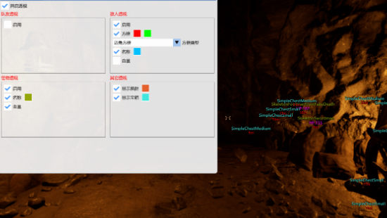 這款輔助工具提供了多項實用功能,主要分為透視和快捷鍵兩大類: