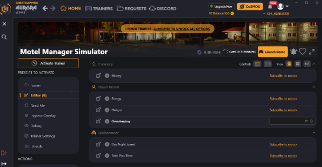 正文摘要:replyreload += ',' + 2357711; ☑️《汽車旅館經理模擬器》超強免費外掛工具 輕鬆管理旅館大亨 想要輕鬆體驗經營汽車旅館的樂趣嗎?《汽車旅館經理模擬器》(Motel Manager Simulator)這款遊戲讓你扮演旅館老闆,管理一切大小事務。今天要介紹的外掛工具,能讓你更順利地打造夢想中的旅館帝國! ☑️ 外掛啟動方式 1. 在主選單畫面按下F1鍵 2. 聆聽"Trainer Activated"的提示音 3. 按下想使用的熱鍵(可在外掛中自訂) ☑️ 實用功能一覽 遊戲玩法: • NumPad1: 調整遊戲速度 金錢修改: • 自由設定金錢數量 玩家需求: • 調整精力值 • 調整飢餓度 • 調整過度睡眠狀態 環境設定: • 日夜循環速度 • 總遊戲時間 ☑️ 使用小技巧 1. 精力值設定:數值越高,消耗速度越慢。 2. 日夜循環: • 較小數值:加速時間流逝 • 較大數值:減緩時間流逝 • 極高數值:幾乎凍結當前時間 • 設為10:一天飛快流逝 3. 總遊戲時間:影響目前的日期和時間,決定遊戲進行到第幾天、幾點。 ☑️ 下載連結 所有站內附件皆會附上安全掃描報告請會員查看純淨度百分比後判斷使用(adsbygoogle = window.adsbygoogle || []).push({});相關檔案須知:取得檔案前,請先詳細閱讀文章內容避免不必要錯誤與誤會發生。也可多參考文章討論樓層內容了解附件檔案相關討論資訊。 【此文章部分內容隱藏中】 解除隱藏說明教學點擊下方 繼續閱讀文章 後請仔細觀看文章內容 並依照指示進行下一步最後完成解除隱藏後系統會回到此文章自動顯示隱藏內容~繼續閱讀 ☑️ 常見問題 Q1: 使用外掛會影響遊戲體驗嗎? A1: 這要看個人喜好。外掛能讓你更快體驗遊戲內容,但也可能減少挑戰性。建議先體驗原版遊戲,再斟酌使用外掛。 Q2: 外掛安全嗎?會被遊戲偵測到嗎? A2: 本外掛為單機遊戲使用,不會影響其他玩家。但建議在使用前先備份存檔,以策安全。 Q3: 如何移除外掛? A3: 只要關閉外掛程式,遊戲就會回到原本狀態。重新啟動遊戲也能確保完全移除外掛效果。 👉 GM後台版 遊戲 推薦 ⬇️⬇️⬇️ 快速玩各種二次元動漫手遊appreplyreload += ',' + 2357711; |