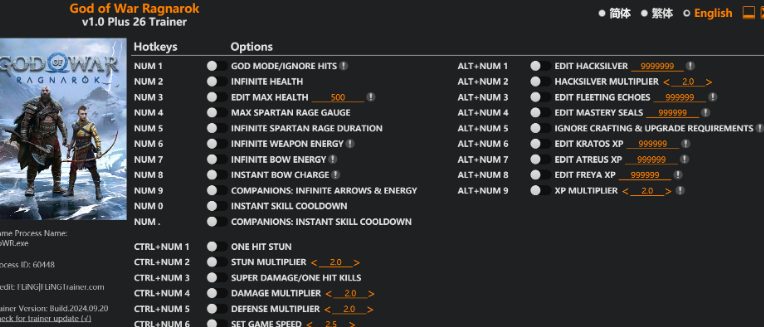 《戰神5:諸神黃昏》是備受期待的動作冒險遊戲續作。為了讓玩家能夠更輕鬆地體驗遊戲,本文將介紹一款功能強大的修改器,提供26項實用選項,包括無敵模式、無限生命、一擊必殺等。這款修改器適用於遊戲版本v1.0+,最後更新日期為2024年9月20日。