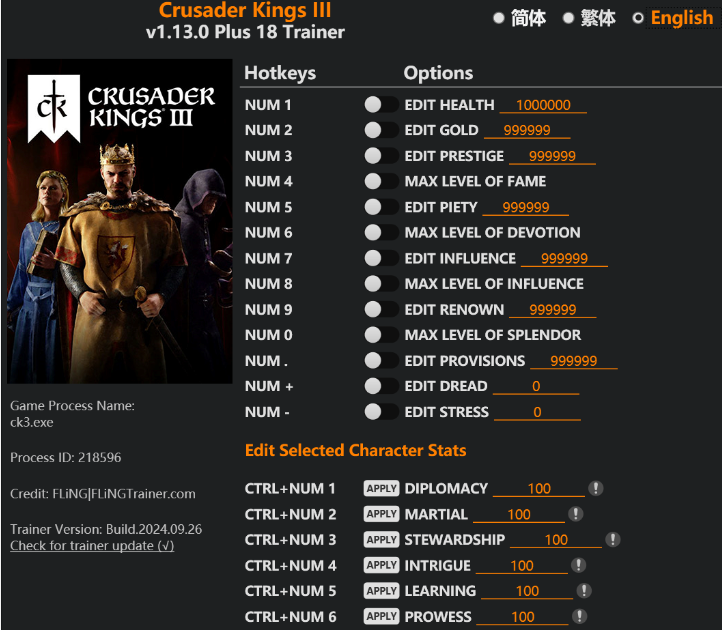 正文摘要:replyreload += ',' + 2359760;《十字軍之王III》18項修改器功能詳解與下載教學 ☑️ 十字軍之王III修改器介紹 十字軍之王III是一款深受玩家喜愛的中世紀王朝模擬遊戲。為了讓玩家能夠更自由地體驗遊戲,今天為大家帶來一款功能強大的18項修改器,適用於遊戲版本v1.0-v1.13.0+。 ☑️ 修改器功能詳解 1. 數字鍵1 - 編輯生命值 2. 數字鍵2 - 編輯金幣 3. 數字鍵3 - 編輯威望 4. 數字鍵4 - 最大化聲望等級 5. 數字鍵5 - 編輯虔誠度 6. 數字鍵6 - 最大化虔誠等級 7. 數字鍵7 - 編輯影響力 8. 數字鍵8 - 最大化影響力等級 9. 數字鍵9 - 編輯聲譽 10. 數字鍵0 - 最大化光輝等級 11. 數字鍵. - 編輯補給品 12. 數字鍵+ - 編輯恐懼值 13. 數字鍵- - 編輯壓力值 編輯所選角色屬性: 14. Ctrl+數字鍵1 - 外交 15. Ctrl+數字鍵2 - 軍事 16. Ctrl+數字鍵3 - 管理 17. Ctrl+數字鍵4 - 陰謀 18. Ctrl+數字鍵5 - 學識 19. Ctrl+數字鍵6 - 武力 ☑️ 修改器下載與使用方法 1. 點擊下方的下載連結,獲取修改器檔案。 所有站內附件皆會附上安全掃描報告請會員查看純淨度百分比後判斷使用(adsbygoogle = window.adsbygoogle || []).push({});相關檔案須知:取得檔案前,請先詳細閱讀文章內容避免不必要錯誤與誤會發生。也可多參考文章討論樓層內容了解附件檔案相關討論資訊。 【此文章部分內容隱藏中】 解除隱藏說明教學點擊下方 繼續閱讀文章 後請仔細觀看文章內容 並依照指示進行下一步最後完成解除隱藏後系統會回到此文章自動顯示隱藏內容~繼續閱讀 2. 下載完成後,解壓縮"Crusader.Kings.III.v1.13.0.Plus.18.Trainer-FLiNG.zip"檔案。 3. 運行遊戲,待遊戲完全載入後,再運行修改器程式。 4. 在遊戲中使用對應的熱鍵即可啟動相應的修改功能。 ☑️ 使用注意事項 1. 請確保您的遊戲版本與修改器版本相符。 2. 使用修改器可能會影響遊戲平衡,建議僅在單人模式中使用。 3. 部分防毒軟體可能會誤報修改器為病毒,可以將其添加到白名單中。 ☑️ 常見問題解答 Q1: 修改器無法正常運作怎麼辦? A1: 請確認遊戲版本是否與修改器相符,並以管理員身份運行修改器。 Q2: 使用修改器會影響遊戲存檔嗎? A2: 通常不會,但建議在使用修改器前先備份存檔,以防萬一。 Q3: 可以在多人遊戲中使用修改器嗎? A3: 不建議在多人遊戲中使用,可能會導致遊戲不同步或被封號。 👉 GM後台版 遊戲 推薦 ⬇️⬇️⬇️ 快速玩各種二次元動漫手遊appreplyreload += ',' + 2359760; |