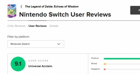 正文摘要:《薩爾達傳說:智慧的再現》獲得玩家高度好評,M站評分達9.1分! 《薩爾達傳說:智慧的再現》(The Legend of Zelda: Echoes of Wisdom) 於9月26日正式在Nintendo Switch平台發售。這款備受期待的遊戲在M站(Metacritic)上獲得了玩家的熱烈好評,目前累積了57位玩家的評分,其中高達52位給予好評,3位中評,僅2位差評,整體評分高達9.1分。 儘管存在一些小缺陷,《薩爾達傳說:智慧的再現》仍然獲得了玩家們的高度讚賞。這款遊戲不僅延續了薩爾達系列的經典元素,還帶來了許多創新的玩法和設計,為玩家們帶來了一次全新的海拉魯冒險之旅。 以下廣告滑動後還有帖子內容var custom_call_MIR = function (params) {if ( params === null || params.hasAd === false ) {var divRowSide;for (let index = 0; index < ONEADs.length; index++) {if (ONEADs[index].pub.player_mode === "mobile-inread") {divRowSide = ONEADs[index].pub.slotobj;}}var ins = document.createElement('ins');ins.className = 'clickforceads';ins.setAttribute('style', 'display:inline-block;');ins.setAttribute('data-ad-zone', '18264');divRowSide.appendChild(ins);var js = document.createElement('script');js.async = true;js.type = 'text/javascript';js.setAttribute('src', '//cdn.holmesmind.com/js/init.js');js.onload = function(){console.log('[ONEAD MIR] ClickForce Loaded');};divRowSide.appendChild(js);}};var _ONEAD = {};_ONEAD.pub = {};_ONEAD.pub.slotobj = document.getElementById("oneadMIRDFPTag");_ONEAD.pub.slots = ["div-onead-ad"];_ONEAD.pub.uid = "1000509";_ONEAD.pub.external_url = "https://onead.onevision.com.tw/";_ONEAD.pub.scopes = ["spotbuy", "speed"];_ONEAD.pub.player_mode_div = "div-onead-ad";_ONEAD.pub.player_mode = "mobile-inread";_ONEAD.pub.queryAdCallback = custom_call_MIR;var ONEAD_pubs = ONEAD_pubs || [];ONEAD_pubs.push(_ONEAD);var truvidScript = document.createElement('script'); truvidScript.async = true; truvidScript.setAttribute('data-cfasync','false'); truvidScript.type = 'text/javascript'; truvidScript.src = '//stg.truvidplayer.com/index.php?sub_user_id=597&widget_id=3309&playlist_id=2381&m=a&cb=' + (Math.random() * 10000000000000000); var currentScript = document.currentScript || document.scripts[document.scripts.length - 1]; currentScript.parentNode.insertBefore(truvidScript, currentScript.nextSibling); 常見問題解答 Q1: 《薩爾達傳說:智慧的再現》的發售平台是什麼? A1: 本作專屬於Nintendo Switch平台。 Q2: 遊戲目前在M站的評分是多少? A2: 目前遊戲在M站的玩家評分高達9.1分。 Q3: 玩家對遊戲最讚賞的方面有哪些? A3: 玩家主要讚賞遊戲的玩法設計、配樂和故事情節。 Q4: 遊戲存在哪些被玩家提出的問題? A4: 部分玩家提到某些區域存在掉幀問題,以及角色對話過長和不必要的動畫等問題。 Q5: 這款遊戲與之前的薩爾達系列遊戲有何不同? A5: 雖然保留了系列經典元素,但《智慧的再現》帶來了新的玩法和設計,為玩家提供全新的冒險體驗。 👉 GM後台版 遊戲 推薦 ⬇️⬇️⬇️ 快速玩各種二次元動漫手遊app |
