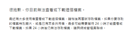 正文摘要:《Google雲端硬碟》超過下載限制,突破下載限制,教學方法 免費無限下載技巧大公開 ☑️ Google雲端硬碟下載限制問題解決方案 你是否曾遇到以下情況?想要下載Google雲端硬碟上的檔案,卻看到這樣的提示: 「很抱歉,您目前無法查看或下載這個檔案。最近有太多使用者觀看或下載這個檔案,請稍後再嘗試存取檔案。如果您要存取的檔案特別龐大,或是已有眾多分享者,您可能需要等待24小時才能觀看或下載檔案。如果您在24小時後仍無法存取檔案,請與網域管理員聯絡。」 別擔心!本文將為您介紹一個簡單有效的方法,讓您輕鬆突破Google雲端硬碟的下載限制,實現免費無限下載。 ☑️ 突破下載限制的步驟說明 打開欲下載的檔案後若出現無法下載的時候 12. 壓縮完成後,檔案將自動開始下載,成功突破24小時下載限制! ☑️ 使用技巧與注意事項 - 此方法適用於大多數因下載限制而無法取得的檔案。 - 確保您的Google帳戶有足夠的儲存空間來接收檔案。 - 如遇到特別大的檔案,下載時間可能會較長,請耐心等待。 - 建議在網路穩定的環境下操作,以確保下載順利完成。 以下廣告滑動後還有帖子內容var custom_call_MIR = function (params) {if ( params === null || params.hasAd === false ) {var divRowSide;for (let index = 0; index < ONEADs.length; index++) {if (ONEADs[index].pub.player_mode === "mobile-inread") {divRowSide = ONEADs[index].pub.slotobj;}}var ins = document.createElement('ins');ins.className = 'clickforceads';ins.setAttribute('style', 'display:inline-block;');ins.setAttribute('data-ad-zone', '18264');divRowSide.appendChild(ins);var js = document.createElement('script');js.async = true;js.type = 'text/javascript';js.setAttribute('src', '//cdn.holmesmind.com/js/init.js');js.onload = function(){console.log('[ONEAD MIR] ClickForce Loaded');};divRowSide.appendChild(js);}};var _ONEAD = {};_ONEAD.pub = {};_ONEAD.pub.slotobj = document.getElementById("oneadMIRDFPTag");_ONEAD.pub.slots = ["div-onead-ad"];_ONEAD.pub.uid = "1000509";_ONEAD.pub.external_url = "https://onead.onevision.com.tw/";_ONEAD.pub.scopes = ["spotbuy", "speed"];_ONEAD.pub.player_mode_div = "div-onead-ad";_ONEAD.pub.player_mode = "mobile-inread";_ONEAD.pub.queryAdCallback = custom_call_MIR;var ONEAD_pubs = ONEAD_pubs || [];ONEAD_pubs.push(_ONEAD);var truvidScript = document.createElement('script'); truvidScript.async = true; truvidScript.setAttribute('data-cfasync','false'); truvidScript.type = 'text/javascript'; truvidScript.src = '//stg.truvidplayer.com/index.php?sub_user_id=597&widget_id=3309&playlist_id=2381&m=a&cb=' + (Math.random() * 10000000000000000); var currentScript = document.currentScript || document.scripts[document.scripts.length - 1]; currentScript.parentNode.insertBefore(truvidScript, currentScript.nextSibling); ☑️ 常見問題解答(Q&A) Q1: 為什麼我還是無法下載某些檔案? A1: 有些檔案可能因為版權或其他限制而無法使用此方法。在這種情況下,建議您聯絡檔案擁有者或等待24小時後再試。 Q2: 這個方法會影響我的Google帳戶安全嗎? A2: 不會。這個方法只是利用了Google雲端硬碟的既有功能,不會對您的帳戶安全造成任何影響。 Q3: 我可以用這個方法下載任何大小的檔案嗎? A3: 理論上是可以的,但實際下載速度和成功率可能會受到您的網路狀況和Google伺服器負載的影響。 Q4: 這個方法適用於分享給我的檔案嗎? A4: 是的,只要該檔案出現在您的Google雲端硬碟中,就可以使用此方法。 Q5: 如果檔案仍然無法下載,我該怎麼辦? A5: 您可以嘗試清除瀏覽器快取,或使用不同的瀏覽器再試一次。如果問題持續,可能需要等待一段時間後再嘗試。 記住,善用這個方法可以幫助您更有效率地使用Google雲端硬碟,輕鬆突破下載限制! 👉 GM後台版 遊戲 推薦 ⬇️⬇️⬇️ 快速玩各種二次元動漫手遊app |