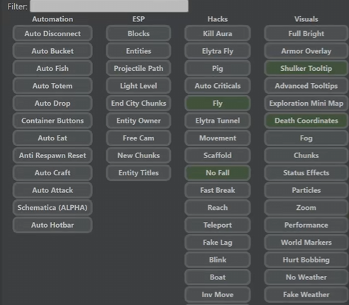 正文摘要:replyreload += ',' + 2360846;《我的世界》1.18.2-1.20.4 高版本輔助MOD 免費下載教學 ☑️ 《我的世界》高版本輔助MOD介紹 這款《我的世界》高版本輔助MOD適用於1.18.2至1.20.4版本之間,是一個功能豐富的免費輔助工具。雖然沒有太過強大的功能,但基本的輔助功能都具備,能夠大幅提升遊戲體驗。 ☑️ 主要功能特色 1. 支援透視MOD方塊(部分方塊可能無法透視,需自行測試) 2. 礦物透視功能(某些版本可能存在BUG,可嘗試開關光影解決) 3. 基本輔助功能齊全(不同版本功能可能有所增減) 4. 可通過大部分伺服器檢測(建議自行測試) ☑️ 安裝教學 1. 下載對應版本的zergatul.cheatutils檔案 2. 將下載的檔案拖曳至MODS資料夾中 3. 啟動遊戲,即可使用輔助功能 ☑️ 注意事項 1. 使用前請仔細閱讀包內附帶的說明文件 2. 套件中還包含其他單獨的輔助MOD,可自行嘗試 3. 建議僅在與朋友聯機遊玩時使用,避免影響他人遊戲體驗 ☑️ 下載連結 所有站內附件皆會附上安全掃描報告請會員查看純淨度百分比後判斷使用(adsbygoogle = window.adsbygoogle || []).push({});相關檔案須知:取得檔案前,請先詳細閱讀文章內容避免不必要錯誤與誤會發生。也可多參考文章討論樓層內容了解附件檔案相關討論資訊。 【此文章部分內容隱藏中】 解除隱藏說明教學點擊下方 繼續閱讀文章 後請仔細觀看文章內容 並依照指示進行下一步最後完成解除隱藏後系統會回到此文章自動顯示隱藏內容~繼續閱讀 ☑️ 常見問題 Q1: 這個輔助MOD是否支援所有1.18.2-1.20.4之間的版本? A1: 是的,這個輔助MOD支援1.18.2至1.20.4之間的所有版本。 Q2: 使用這個MOD會不會被伺服器封鎖? A2: 雖然這個MOD可以通過大部分伺服器的檢測,但我們還是建議謹慎使用,最好在私人伺服器或與朋友遊玩時使用。 Q3: 如果遇到礦物透視功能出現BUG該怎麼辦? A3: 如果遇到礦物透視功能的BUG,可以嘗試開關光影效果,這可能會解決問題。 Q4: 可以同時使用這個MOD包中的其他輔助MOD嗎? A4: 是的,MOD包中包含了其他單獨的輔助MOD,您可以自行嘗試使用,但請注意可能會有相容性問題。 👉 GM後台版 遊戲 推薦 ⬇️⬇️⬇️ 快速玩各種二次元動漫手遊appreplyreload += ',' + 2360846; |