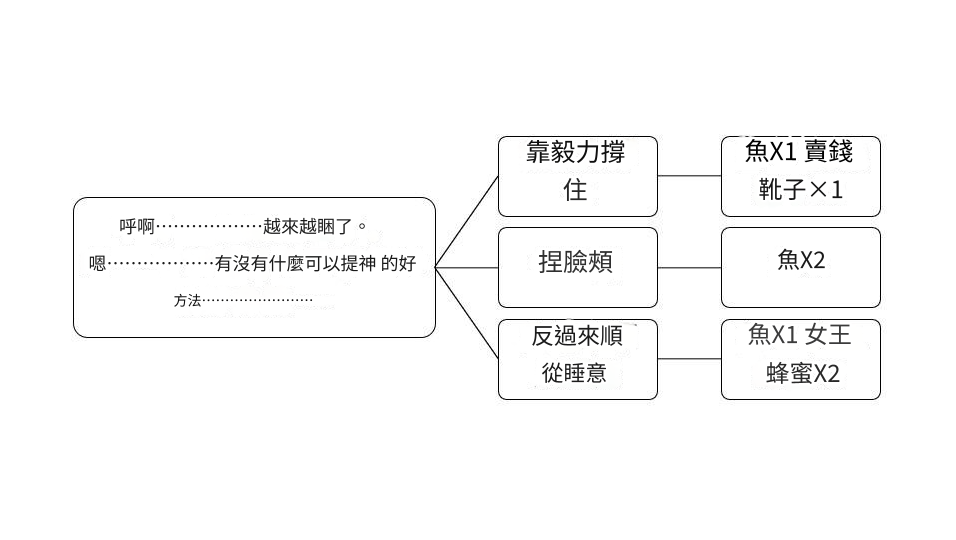 暗喻幻想這釣魚規則很簡單,蚯蚓釣餌出柔韌鯽,尾巴釣餌出傳說中的魚王。 對應問題會獲得的道具,數量及組成與圖片上一樣,缺啥選啥就是。換錢道具是個只剩一隻的單筒靴,沒必要在意這東西。