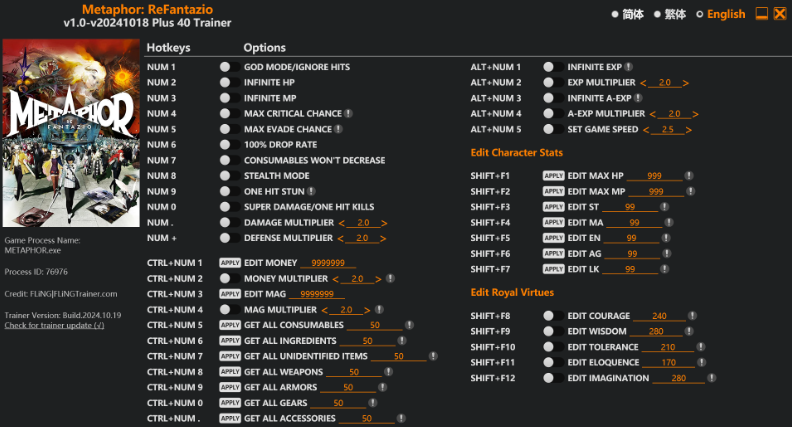 正文摘要:replyreload += ',' + 2362191;《暗喻幻想:ReFantazio》遊戲修改器免費下載教學 - 40種作弊功能助你輕鬆通關 ☑️ 暗喻幻想:ReFantazio 修改器介紹 這款針對《暗喻幻想:ReFantazio》開發的修改器提供了多達40種強大的作弊功能,可以讓玩家輕鬆掌控遊戲進程。無論你是想體驗無敵模式、快速升級,還是獲取海量資源,這款修改器都能滿足你的需求。 ☑️ 主要功能一覽 1. 無敵模式/無視傷害 (Num 1) 2. 無限生命值 (Num 2) 3. 無限魔法值 (Num 3) 4. 暴擊機率最大化 (Num 4) 5. 閃避機率最大化 (Num 5) 6. 100%掉落率 (Num 6) 7. 消耗品不減少 (Num 7) 8. 隱身模式 (Num 8) 9. 一擊暈眩 (Num 9) 10. 超級傷害/一擊必殺 (Num 0) ☑️ 進階功能說明 - 金錢編輯與倍增器 (Ctrl+Num 1/2) - MAG編輯與倍增器 (Ctrl+Num 3/4) - 獲取全部消耗品、材料、未鑑定物品 (Ctrl+Num 5/6/7) - 獲取全部武器、防具、裝備、飾品 (Ctrl+Num 8/9/0/.) ☑️ 經驗值與遊戲速度調整 - 無限經驗值與倍增器 (Alt+Num 1/2) - 無限A-Exp與倍增器 (Alt+Num 3/4) - 設定遊戲速度 (Alt+Num 5) ☑️ 角色屬性編輯 使用Shift+F1到F7可以編輯以下屬性: - 最大HP/MP - 力量(ST) - 魔力(MA) - 耐力(EN) - 敏捷(AG) - 幸運(LK) ☑️ 皇家美德編輯 使用Shift+F8到F12可以編輯以下美德: - 勇氣 - 智慧 - 寬容 - 雄辯 - 想像力 ☑️ 下載與安裝說明 1. 點擊下方的「下載連結」下載修改器檔案。 2. 解壓縮下載的檔案。 3. 運行遊戲,然後啟動修改器程式。 4. 使用上述快捷鍵來啟用各種作弊功能。 所有站內附件皆會附上安全掃描報告請會員查看純淨度百分比後判斷使用(adsbygoogle = window.adsbygoogle || []).push({});相關檔案須知:取得檔案前,請先詳細閱讀文章內容避免不必要錯誤與誤會發生。也可多參考文章討論樓層內容了解附件檔案相關討論資訊。 【此文章部分內容隱藏中】 解除隱藏說明教學點擊下方 繼續閱讀文章 後請仔細觀看文章內容 並依照指示進行下一步最後完成解除隱藏後系統會回到此文章自動顯示隱藏內容~繼續閱讀 ☑️ 注意事項 - 本修改器適用於遊戲版本v1.0-v20241018+。 - 使用修改器可能會影響遊戲平衡,建議僅在單機模式下使用。 - 請確保您的防毒軟體不會誤判修改器為威脅。 ☑️ 常見問題與解答 Q1: 修改器無法正常運作怎麼辦? A1: 請確認遊戲版本是否相符,並以管理員身份運行修改器。 Q2: 使用修改器會影響遊戲存檔嗎? A2: 一般不會,但建議在使用前先備份存檔以策安全。 Q3: 修改器可以在線上模式使用嗎? A3: 不建議在線上模式使用,以免影響遊戲公平性或觸犯遊戲規則。 👉 GM後台版 遊戲 推薦 ⬇️⬇️⬇️ 快速玩各種二次元動漫手遊appreplyreload += ',' + 2362191; |