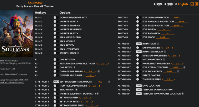 正文摘要:replyreload += ',' + 2362197;《靈魂面具》免費修改器下載:42種功能助你輕鬆征服遊戲世界 ☑️ 靈魂面具SOULMASK修改器介紹 各位玩家好!今天為大家帶來一款功能強大的《靈魂面具》修改器,共有42種選項可供使用。這款修改器適用於Early Access+版本,最後更新時間為2024年10月19日。讓我們一起來看看這款修改器能為我們帶來哪些驚喜吧! ☑️ 靈魂面具修改器功能詳解 1. 數字鍵功能: - Num 1:無敵模式/無視傷害 - Num 2:無限生命值 - Num 3:無限耐力 - Num 4:無限韌性 - Num 5:無限呼吸 - Num 6:面具能量最大化 - Num 7:士氣最大化 - Num 8:飽食度最大化 - Num 9:水分最大化 - Num 0:隱身模式 2. 功能鍵功能: - F1:一擊暈眩 - F2:韌性傷害倍數 - F3:一擊必殺 - F4:傷害倍數調整 - F5:防禦倍數調整 3. Ctrl+數字鍵功能: - Ctrl+Num 1:編輯拖曳物品數量 - Ctrl+Num 2:物品拾取倍數 - Ctrl+Num 3:零重量 - Ctrl+Num 4:裝備無限耐久度 - Ctrl+Num 5:設定遊戲速度 - Ctrl+Num 6:設定玩家速度 - Ctrl+Num 7:設定移動速度 - Ctrl+Num 8:設定跳躍高度 4. Shift+功能鍵功能: - Shift+F1:編輯昏迷保護 - Shift+F2:編輯麻痺保護 - Shift+F3:編輯流血保護 - Shift+F4:編輯中毒狀態 - Shift+F5:編輯輻射狀態 - Shift+F6:編輯心情狀態 5. Alt+數字鍵功能: - Alt+Num 1:無限經驗值 - Alt+Num 2:經驗值倍數 - Alt+Num 3:無限面具經驗值 - Alt+Num 4:面具經驗值倍數 - Alt+Num 5:技能熟練度最大化 - Alt+Num 6:技能熟練度倍數 - Alt+Num 7:編輯屬性點數 - Alt+Num 8:編輯科技點數 - Alt+Num 9:凍結日間時間 - Alt+Num 0:時間流逝速度調整 6. 其他功能: - Alt+Num .:儲存位置 - Alt+Num /:傳送至儲存位置 - Alt+Num *:傳送至路徑點位置 ☑️ 靈魂面具修改器使用小技巧 1. 合理使用無敵模式:在困難的戰鬥中可以開啟,但不要過度依賴,以保持遊戲樂趣。 2. 善用經驗值倍數:可以加快角色成長速度,但建議不要設置得太高,以免影響遊戲平衡。 3. 靈活運用傳送功能:可以快速在地圖間移動,節省時間。 4. 調整遊戲速度:可以根據個人喜好加快或減慢遊戲節奏。 5. 注意使用時機:某些功能可能會影響遊戲體驗,建議在需要時再開啟。 ☑️ 靈魂面具修改器下載方式 所有站內附件皆會附上安全掃描報告請會員查看純淨度百分比後判斷使用(adsbygoogle = window.adsbygoogle || []).push({});相關檔案須知:取得檔案前,請先詳細閱讀文章內容避免不必要錯誤與誤會發生。也可多參考文章討論樓層內容了解附件檔案相關討論資訊。 【此文章部分內容隱藏中】 解除隱藏說明教學點擊下方 繼續閱讀文章 後請仔細觀看文章內容 並依照指示進行下一步最後完成解除隱藏後系統會回到此文章自動顯示隱藏內容~繼續閱讀 ☑️ 常見問題解答 Q1: 這個修改器會影響遊戲存檔嗎? A1: 一般來說不會影響存檔,但建議在使用前先備份存檔以防萬一。 Q2: 使用修改器會被遊戲官方封號嗎? A2: 本修改器僅供單機遊戲使用,不會影響多人遊戲或導致封號。但請勿在多人模式中使用。 Q3: 如何安全地關閉修改器? A3: 建議在關閉修改器前,先將所有修改功能關閉,然後退出遊戲,最後再關閉修改器。 Q4: 修改器無法正常運作怎麼辦? A4: 請確保您的遊戲版本與修改器版本相符,並以管理員身份運行修改器。如果問題仍然存在,可以嘗試重新下載或聯繫我們尋求幫助。 希望這篇教學能幫助大家更好地享受《靈魂面具》的遊戲樂趣。祝大家遊戲愉快! 👉 GM後台版 遊戲 推薦 ⬇️⬇️⬇️ 快速玩各種二次元動漫手遊appreplyreload += ',' + 2362197; |