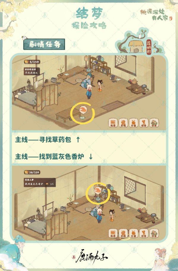 結夢劇情探險主線怎麼玩結夢·主線劇情任務主線—尋找草藥包主線—找到藍灰色香爐