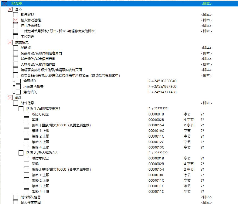 三國志8重製版使用CE腳本教學 ☑️ CT腳本使用教學 【前置準備】 1. 確認已下載CE修改器主程式(建議使用7.5或以上版本) 2. 下載對應遊戲的CT腳本檔案 【載入步驟】 1. 先開啟遊戲主程式 2. 以系統管理員身分執行CE修改器 3. 點選CE修改器上方工具列的『載入』按鈕 4. 選擇已下載的CT腳本檔案 5. 回到CE修改器主視窗,確認腳本是否已成功載入 6. 勾選需要使用的修改功能即可生效 【使用注意事項】 - 建議先進行存檔備份 - 部分功能需在特定遊戲畫面下才能使用 - 若修改無效,請確認: - 遊戲版本是否相符 - 是否以管理員權限執行 - 防毒軟體是否已關閉 【常見問題處理】 - 如果出現「無法開啟程序」訊息:請確認是否已開啟遊戲 - 若顯示「數值寫入失敗」:通常是權限問題,請重新以管理員身分執行 - 功能無法勾選:需要先開啟對應的遊戲畫面 需要我針對任何部分補充或修改嗎? |