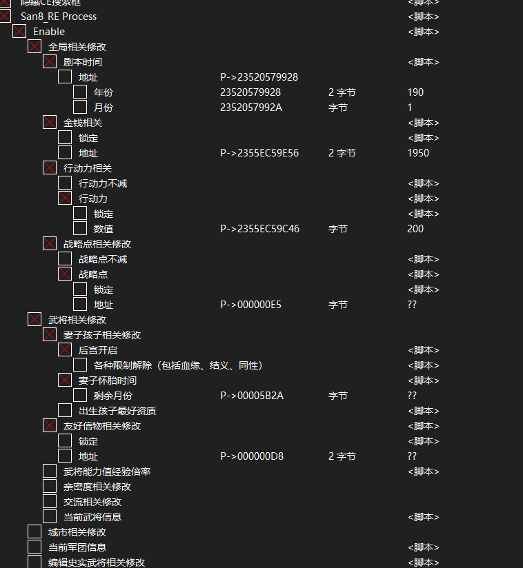 正文摘要:replyreload += ',' + 2362748;《三國志8重製版》完整修改秘技!無限婚姻及金蘭系統開放版 2024最新版 ☑️ 修改器基本資訊 適用遊戲版本:1.0.1.2401 及後續更新版本 修改器版本要求:Cheat Engine 7.5 以上 更新日期:2024/01 ☑️ 功能展示及詳細說明 ☑️ 功能詳解 1. 【後宮系統】 - 開啟後可與多名女性武將建立婚姻關係 - 無視原始遊戲的婚姻限制 2. 【限制解除功能】 - 解除血緣關係限制 - 解除金蘭關係限制 - 解除性別限制 ⚠️ 注意:啟用此功能時,可能會出現重複對話情況,關閉功能後即可恢復正常 ☑️ 下載連結 所有站內附件皆會附上安全掃描報告請會員查看純淨度百分比後判斷使用(adsbygoogle = window.adsbygoogle || []).push({});相關檔案須知:取得檔案前,請先詳細閱讀文章內容避免不必要錯誤與誤會發生。也可多參考文章討論樓層內容了解附件檔案相關討論資訊。 【此文章部分內容隱藏中】 解除隱藏說明教學點擊下方 繼續閱讀文章 後請仔細觀看文章內容 並依照指示進行下一步最後完成解除隱藏後系統會回到此文章自動顯示隱藏內容~繼續閱讀 ☑️ 常見問題Q&A Q1:修改器與遊戲版本不相容怎麼辦? A1:建議優先更新修改器至最新版本,若仍有問題可在下方留言反應。 Q2:啟用後無法正常對話怎麼處理? A2:可以先關閉「限制解除」功能,待對話完成後再重新啟用。 Q3:修改器安全性如何? A3:本修改器僅供單機遊戲使用,不影響遊戲存檔及系統檔案。 👉 GM後台版 遊戲 推薦 ⬇️⬇️⬇️ 快速玩各種二次元動漫手遊appreplyreload += ',' + 2362748; |