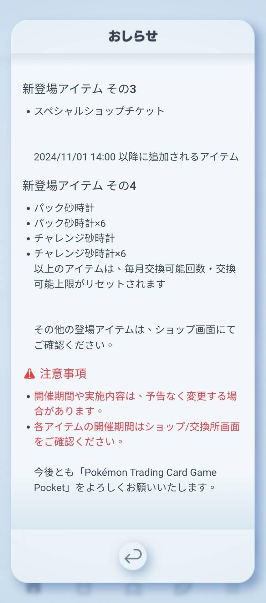 正文摘要:《寶可夢集換式卡牌遊戲》免費資源系統完整解析|超詳細開包時間重置機制教學 ☑️ 【重要情報】商店系統與時間重置機制 各位訓練家大家好!今天要為大家詳細介紹《寶可夢集換式卡牌遊戲》中關於商店開包與得卡沙漏的重要更新資訊。這個機制對於新手玩家特別重要,讓我們一起來了解吧! ☑️ 【新手指南】資源運用建議 1. 商店券獲取方式: - 每日對戰獲勝(含私人對戰) - 獲得他人「謝謝」 - 收藏獲得按讚(每日上限5張) 2. 商店券使用建議: - 優先購買基本物品卡(如:傷藥、快速撤退) - 重點購買沙漏道具(開包>挑戰) - 剩餘可考慮購買周邊卡冊 ☑️ 【進階攻略】單人模式說明 - 單人對戰獎勵為一次性 - 新卡池更新才會新增單人任務 - 建議將單人模式視為成就系統來完成 以下廣告滑動後還有帖子內容var custom_call_MIR = function (params) {if ( params === null || params.hasAd === false ) {var divRowSide;for (let index = 0; index < ONEADs.length; index++) {if (ONEADs[index].pub.player_mode === "mobile-inread") {divRowSide = ONEADs[index].pub.slotobj;}}var ins = document.createElement('ins');ins.className = 'clickforceads';ins.setAttribute('style', 'display:inline-block;');ins.setAttribute('data-ad-zone', '18264');divRowSide.appendChild(ins);var js = document.createElement('script');js.async = true;js.type = 'text/javascript';js.setAttribute('src', '//cdn.holmesmind.com/js/init.js');js.onload = function(){console.log('[ONEAD MIR] ClickForce Loaded');};divRowSide.appendChild(js);}};var _ONEAD = {};_ONEAD.pub = {};_ONEAD.pub.slotobj = document.getElementById("oneadMIRDFPTag");_ONEAD.pub.slots = ["div-onead-ad"];_ONEAD.pub.uid = "1000509";_ONEAD.pub.external_url = "https://onead.onevision.com.tw/";_ONEAD.pub.scopes = ["spotbuy", "speed"];_ONEAD.pub.player_mode_div = "div-onead-ad";_ONEAD.pub.player_mode = "mobile-inread";_ONEAD.pub.queryAdCallback = custom_call_MIR;var ONEAD_pubs = ONEAD_pubs || [];ONEAD_pubs.push(_ONEAD);var truvidScript = document.createElement('script'); truvidScript.async = true; truvidScript.setAttribute('data-cfasync','false'); truvidScript.type = 'text/javascript'; truvidScript.src = '//stg.truvidplayer.com/index.php?sub_user_id=597&widget_id=3309&playlist_id=2381&m=a&cb=' + (Math.random() * 10000000000000000); var currentScript = document.currentScript || document.scripts[document.scripts.length - 1]; currentScript.parentNode.insertBefore(truvidScript, currentScript.nextSibling); ☑️ 【常見問答】Q&A Q1:無課玩家能無限刷商店券嗎? A1:每日有固定上限,主要通過對戰和社交互動獲得。 Q2:單人對戰獎勵會重置嗎? A2:不會重置,是一次性獎勵。 Q3:累積的得卡沙漏會歸零嗎? A3:商店兌換的會重置,自己累積獲得的不會。 👉 GM後台版 遊戲 推薦 ⬇️⬇️⬇️ 快速玩各種二次元動漫手遊app |