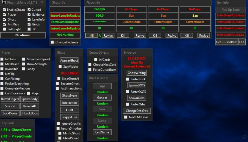 正文摘要:replyreload += ',' + 2363721;《恐鬼症Phasmophobia》v0.5.4.4 多功能修改器下載|完整中文教學 更新日期:2024.11.8 支援版本:v0.5.4.4 ☑️ 修改器功能介紹 本次修改器包含以下強大功能: • 玩家名稱自訂 • 無限體力系統 • 移動速度調整 • 互動範圍最大化 • 投擲力道增強 • 無敵模式 • 理智值調整 • 穿牆功能 • 等級資訊顯示 • 靈異實體資訊(包含名稱、類型、位置與證據) • 玩家狀態監控(理智值與所在房間) • 遊戲亮度調整 • Steam ID隱藏功能 • 快捷鍵選單 • 傳送功能(可傳送至貨車、死亡房間或自訂位置) • 無限塔羅牌 ☑️ 使用教學 1. 開啟恐鬼症遊戲主程式 2. 在遊戲大廳畫面時,以系統管理員身分執行修改器 ☑️ 下載連結 PhasmoMenu v0.5.4.4 修改器 所有站內附件皆會附上安全掃描報告請會員查看純淨度百分比後判斷使用(adsbygoogle = window.adsbygoogle || []).push({});相關檔案須知:取得檔案前,請先詳細閱讀文章內容避免不必要錯誤與誤會發生。也可多參考文章討論樓層內容了解附件檔案相關討論資訊。 【此文章部分內容隱藏中】 解除隱藏說明教學點擊下方 繼續閱讀文章 後請仔細觀看文章內容 並依照指示進行下一步最後完成解除隱藏後系統會回到此文章自動顯示隱藏內容~繼續閱讀 ☑️ 常見問題Q&A Q:修改器為何無法執行? A:請確認是否以系統管理員身分運行,且遊戲版本需與修改器版本相符。 Q:使用修改器會被遊戲封號嗎? A:建議在單人模式下使用,多人連線時使用可能會有風險。 Q:修改器支援哪些遊戲版本? A:目前支援v0.5.4.4版本,其他版本可能會無法正常運作。 👉 GM後台版 遊戲 推薦 ⬇️⬇️⬇️ 快速玩各種二次元動漫手遊appreplyreload += ',' + 2363721; |