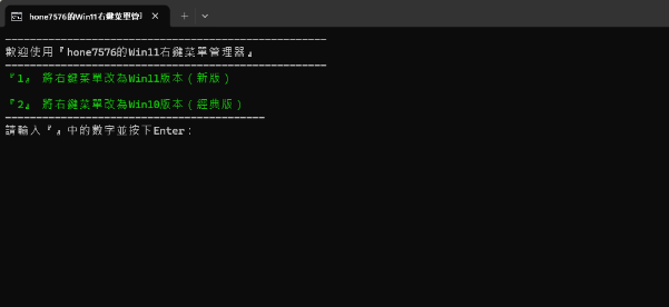 正文摘要:.copy {border: 3px dotted #0000FF;padding-right: 10px;} 本文轉貼來源&作者 (Copying Published Source) hone7576 《Windows 11 右鍵選單管理器》免費下載!輕鬆切換新舊版面 ☑️ Windows 11 右鍵選單管理器介紹 版本:1.0 (最終版) 更新日期:2024.11.9 Windows 11 的新版右鍵選單雖然外觀現代化,但對於習慣舊版的使用者來說可能需要一段適應期。為了讓大家能夠快速回到熟悉的操作模式,本文要介紹一款由網友 hone7576 開發的「Windows 11 右鍵選單管理器」。 這款工具不僅完全開源,而且使用簡單,讓您輕鬆在新舊版右鍵選單之間切換,找回最適合自己的操作方式。 ☑️ 軟體特色 1. 完全開源,程式碼透明可查 2. 檔案極小,僅 1.54KB 3. 繁體中文介面,操作直覺 4. 一鍵切換新舊版右鍵選單 5. 適用於 Windows 11 系統 ☑️ 使用方法 1. 下載「hone7576的Win11右鍵選單管理器.bat」檔案 2. 以系統管理員身份執行該批次檔 3. 依照提示選擇想要的右鍵選單樣式 4. 重新啟動電腦,即可套用新設定 ☑️ 下載連結 下載連結 ☑️ 注意事項 1. 請務必以系統管理員身份執行,否則無法修改系統設定 2. 修改後需重新啟動電腦才能生效 3. 如遇問題可隨時切換回原始設定 以下廣告滑動後還有帖子內容var custom_call_MIR = function (params) {if ( params === null || params.hasAd === false ) {var divRowSide;for (let index = 0; index < ONEADs.length; index++) {if (ONEADs[index].pub.player_mode === "mobile-inread") {divRowSide = ONEADs[index].pub.slotobj;}}var ins = document.createElement('ins');ins.className = 'clickforceads';ins.setAttribute('style', 'display:inline-block;');ins.setAttribute('data-ad-zone', '18264');divRowSide.appendChild(ins);var js = document.createElement('script');js.async = true;js.type = 'text/javascript';js.setAttribute('src', '//cdn.holmesmind.com/js/init.js');js.onload = function(){console.log('[ONEAD MIR] ClickForce Loaded');};divRowSide.appendChild(js);}};var _ONEAD = {};_ONEAD.pub = {};_ONEAD.pub.slotobj = document.getElementById("oneadMIRDFPTag");_ONEAD.pub.slots = ["div-onead-ad"];_ONEAD.pub.uid = "1000509";_ONEAD.pub.external_url = "https://onead.onevision.com.tw/";_ONEAD.pub.scopes = ["spotbuy", "speed"];_ONEAD.pub.player_mode_div = "div-onead-ad";_ONEAD.pub.player_mode = "mobile-inread";_ONEAD.pub.queryAdCallback = custom_call_MIR;var ONEAD_pubs = ONEAD_pubs || [];ONEAD_pubs.push(_ONEAD);var truvidScript = document.createElement('script'); truvidScript.async = true; truvidScript.setAttribute('data-cfasync','false'); truvidScript.type = 'text/javascript'; truvidScript.src = '//stg.truvidplayer.com/index.php?sub_user_id=597&widget_id=3309&playlist_id=2381&m=a&cb=' + (Math.random() * 10000000000000000); var currentScript = document.currentScript || document.scripts[document.scripts.length - 1]; currentScript.parentNode.insertBefore(truvidScript, currentScript.nextSibling); ☑️ 常見問題 Q&A Q1: 這個工具安全嗎? A1: 本工具完全開源,您可以檢視程式碼確保安全性。作者 hone7576 也是論壇知名的可信任開發者。 Q2: 可以在 Windows 10 上使用嗎? A2: 本工具專為 Windows 11 設計,不建議在其他版本的 Windows 上使用。 Q3: 切換後如何恢復原始設定? A3: 只要再次執行工具,選擇切換回原始設定即可。 Q4: 為什麼切換後沒有立即生效? A4: 系統需要重新啟動才能完全套用新的右鍵選單設定。請記得儲存工作後重新開機。 👉 GM後台版 遊戲 推薦 ⬇️⬇️⬇️ 快速玩各種二次元動漫手遊app |