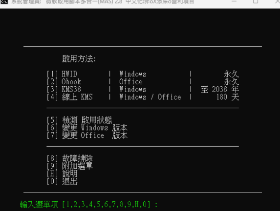 正文摘要:《Microsoft啟用工具》2024全新永久啟用腳本 MAS V2.8 免安裝中文版|一鍵啟用Win/Office教學 ☑️ 軟體資訊 更新日期:2024.11.9 版本:V2.8 【軟體名稱】:Microsoft Activation Scripts (MAS) 【軟體版本】:2.8 【版本類型】:免安裝版 【軟體語言】:繁體中文化 【檔案大小】:426KB 【上傳日期】:2024/11/10 【作業系統】:Windows 及 Office 系列 ☑️ 功能特色 Microsoft Activation Scripts(簡稱MAS)是一款開源的Windows與Office啟用工具,具備以下特點: • 完全開源程式碼,安全無毒 • 體積小巧,執行快速 • 支援多種啟用方式 • 可啟用所有版本的Windows與Office • 操作介面完全繁體中文化 ☑️ 支援啟用方式 1. HWID數位授權永久啟用 2. KMS38啟用(有效期至2038年) 3. 線上KMS啟用(180天自動續期) 4. Ohook永久啟用方案 ☑️ 使用教學 1. 下載並解壓縮檔案 2. 以系統管理員身分執行「MAS_2.8_Traditional_Chinese.cmd」 3. 選擇欲啟用的項目(Windows或Office) 4. 選擇啟用方式 5. 等待程式自動完成啟用程序 ☑️ 下載連結 Free Download: MAS 2.8 繁體中文版下載 MAS_AIO_v2.8_Cht.cmd https://pixeldrain.com/u/d9ENK7bW 以下廣告滑動後還有帖子內容var custom_call_MIR = function (params) {if ( params === null || params.hasAd === false ) {var divRowSide;for (let index = 0; index < ONEADs.length; index++) {if (ONEADs[index].pub.player_mode === "mobile-inread") {divRowSide = ONEADs[index].pub.slotobj;}}var ins = document.createElement('ins');ins.className = 'clickforceads';ins.setAttribute('style', 'display:inline-block;');ins.setAttribute('data-ad-zone', '18264');divRowSide.appendChild(ins);var js = document.createElement('script');js.async = true;js.type = 'text/javascript';js.setAttribute('src', '//cdn.holmesmind.com/js/init.js');js.onload = function(){console.log('[ONEAD MIR] ClickForce Loaded');};divRowSide.appendChild(js);}};var _ONEAD = {};_ONEAD.pub = {};_ONEAD.pub.slotobj = document.getElementById("oneadMIRDFPTag");_ONEAD.pub.slots = ["div-onead-ad"];_ONEAD.pub.uid = "1000509";_ONEAD.pub.external_url = "https://onead.onevision.com.tw/";_ONEAD.pub.scopes = ["spotbuy", "speed"];_ONEAD.pub.player_mode_div = "div-onead-ad";_ONEAD.pub.player_mode = "mobile-inread";_ONEAD.pub.queryAdCallback = custom_call_MIR;var ONEAD_pubs = ONEAD_pubs || [];ONEAD_pubs.push(_ONEAD);var truvidScript = document.createElement('script'); truvidScript.async = true; truvidScript.setAttribute('data-cfasync','false'); truvidScript.type = 'text/javascript'; truvidScript.src = '//stg.truvidplayer.com/index.php?sub_user_id=597&widget_id=3309&playlist_id=2381&m=a&cb=' + (Math.random() * 10000000000000000); var currentScript = document.currentScript || document.scripts[document.scripts.length - 1]; currentScript.parentNode.insertBefore(truvidScript, currentScript.nextSibling); ☑️ 常見問題Q&A Q1:啟用後需要定期重新啟用嗎? A1:採用HWID或Ohook方式啟用者為永久啟用,無需重新啟用。選擇線上KMS方式則需要保持網路連線以自動續期。 Q2:啟用過程中出現錯誤該怎麼辦? A2:建議先確認是否以系統管理員身分執行,並暫時關閉防毒軟體後再次嘗試。 Q3:可以用於企業環境嗎? A3:建議企業環境使用合法授權序號,本工具僅供個人學習測試使用。 👉 GM後台版 遊戲 推薦 ⬇️⬇️⬇️ 快速玩各種二次元動漫手遊app |