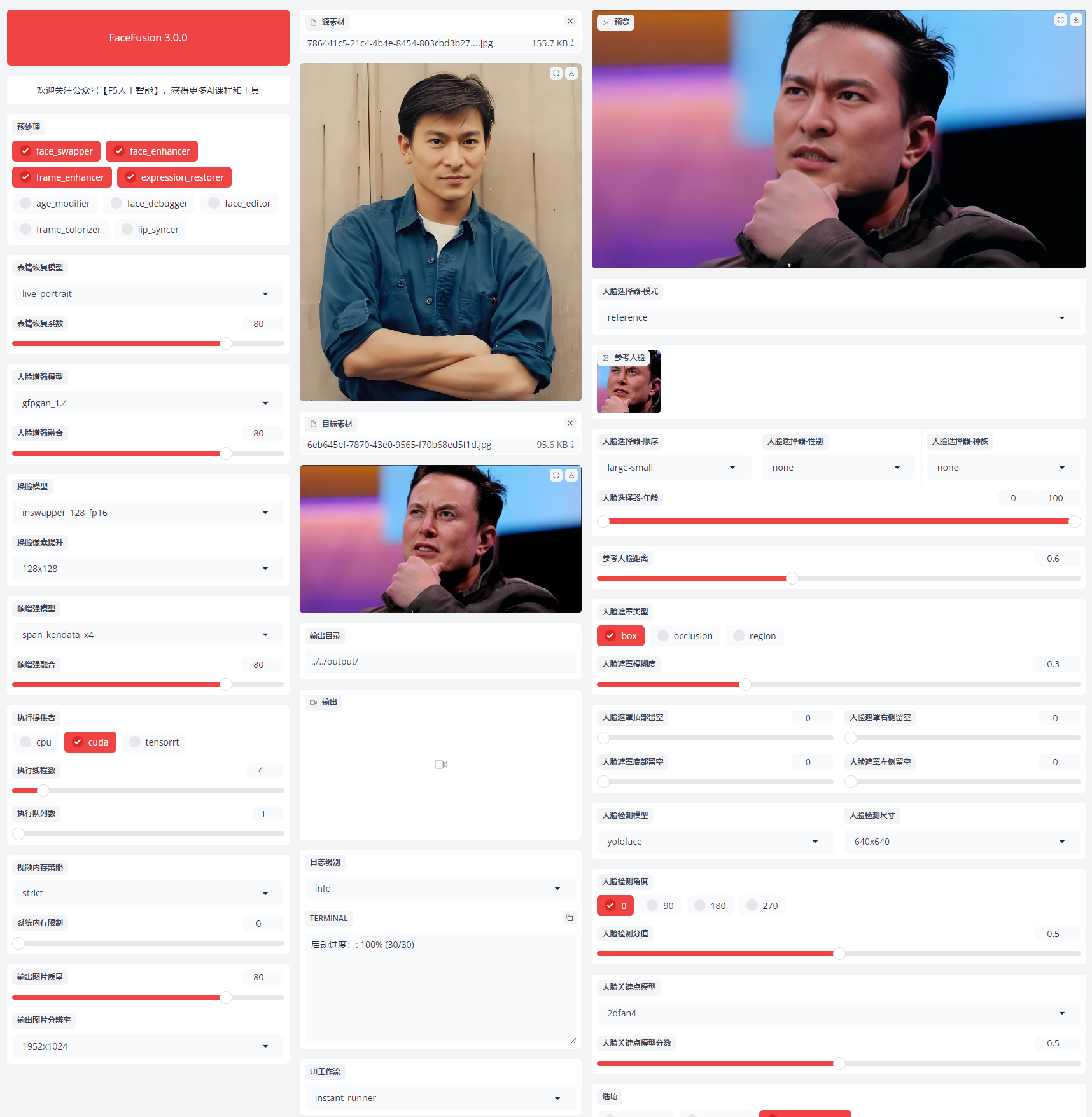 正文摘要:《FaceFusion v3.3.2》免安裝版一鍵啟動 AI換臉工具 2024最新完整版 ☑️ 版本資訊 更新日期: 2024.11.9 版本: 3.3.2 類型: 免安裝一鍵啟動版 語言: 多國語言(含繁體中文) 檔案大小: 15.2GB 硬體需求: 顯示卡 4GB以上 ☑️ 軟體介紹 FaceFusion 3.3.2是由Roop專案核心開發者推出的新一代AI換臉與影像增強工具。本次重大更新不僅支援NVIDIA顯示卡處理,同時提供CPU運算模式(處理較慢)。 ☑️ 3.3.2版更新重點 1. 架構重構優化 - 全新任務處理系統 - 圖元增強技術整合 - 多角度面部偵測 2. 核心功能強化 - 新增年齡修正處理器 - 整合Live Portrait表情恢復技術 - 推出GHOST換臉模型 - 升級到fairface性別年齡模型 3. 效能提升 - 支援CUDA 12.4 - 支援TensorRT 10.4 - 支援OpenVino 2024.1 - 支援ROCm 6.2 .video-container { position: relative; padding-bottom: 56.25%; padding-top: 30px; height: 0; overflow: hidden;}.video-container iframe,.video-container object,.video-container embed { position: absolute; top: 0; left: 0; width: 100%; height: 100%;}外連至此YOUTUBE影片連結 ☑️ 下載連結 Free Download: AMD版本: 點擊下載 Nvidia版本: 點擊下載 以下廣告滑動後還有帖子內容var custom_call_MIR = function (params) {if ( params === null || params.hasAd === false ) {var divRowSide;for (let index = 0; index < ONEADs.length; index++) {if (ONEADs[index].pub.player_mode === "mobile-inread") {divRowSide = ONEADs[index].pub.slotobj;}}var ins = document.createElement('ins');ins.className = 'clickforceads';ins.setAttribute('style', 'display:inline-block;');ins.setAttribute('data-ad-zone', '18264');divRowSide.appendChild(ins);var js = document.createElement('script');js.async = true;js.type = 'text/javascript';js.setAttribute('src', '//cdn.holmesmind.com/js/init.js');js.onload = function(){console.log('[ONEAD MIR] ClickForce Loaded');};divRowSide.appendChild(js);}};var _ONEAD = {};_ONEAD.pub = {};_ONEAD.pub.slotobj = document.getElementById("oneadMIRDFPTag");_ONEAD.pub.slots = ["div-onead-ad"];_ONEAD.pub.uid = "1000509";_ONEAD.pub.external_url = "https://onead.onevision.com.tw/";_ONEAD.pub.scopes = ["spotbuy", "speed"];_ONEAD.pub.player_mode_div = "div-onead-ad";_ONEAD.pub.player_mode = "mobile-inread";_ONEAD.pub.queryAdCallback = custom_call_MIR;var ONEAD_pubs = ONEAD_pubs || [];ONEAD_pubs.push(_ONEAD);var truvidScript = document.createElement('script'); truvidScript.async = true; truvidScript.setAttribute('data-cfasync','false'); truvidScript.type = 'text/javascript'; truvidScript.src = '//stg.truvidplayer.com/index.php?sub_user_id=597&widget_id=3309&playlist_id=2381&m=a&cb=' + (Math.random() * 10000000000000000); var currentScript = document.currentScript || document.scripts[document.scripts.length - 1]; currentScript.parentNode.insertBefore(truvidScript, currentScript.nextSibling); ☑️ 常見問題Q&A Q1: 需要什麼規格的顯示卡? A1: 建議使用4GB以上顯示卡以獲得最佳效能。 Q2: 支援哪些作業系統? A2: 支援Windows系統,且提供CPU運算模式。 Q3: 是否支援批次處理? A3: 是的,新版本支援批次處理功能。 👉 GM後台版 遊戲 推薦 ⬇️⬇️⬇️ 快速玩各種二次元動漫手遊app |