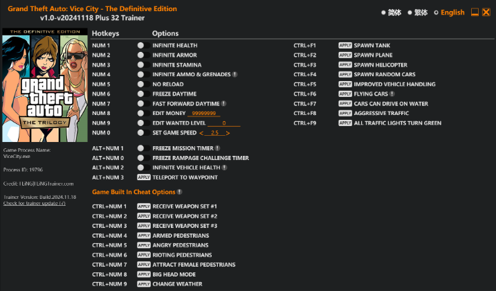 正文摘要:replyreload += ',' + 2364755; ☑️ 版本資訊 更新日期: 2024.11.18 遊戲版本: v1.0-v20241118+ 修改器版本: Plus 32 Trainer 修改器介紹 專為《GTA罪惡城市最終版》開發的全功能修改器,提供32項強大功能,包含角色屬性、載具、遊戲環境等全方位修改選項。 功能列表 基礎功能(數字鍵): • Num 1 - 無限血量 • Num 2 - 無限護甲 • Num 3 - 無限耐力 • Num 4 - 無限彈藥與手榴彈 • Num 5 - 無需換彈 • Num 6 - 時間凍結 • Num 7 - 快進時間 • Num 8 - 修改金錢 • Num 9 - 修改通緝等級 • Num 0 - 調整遊戲速度 進階功能(Alt+數字鍵): • Alt+Num 1 - 任務計時器凍結 • Alt+Num 0 - 狂暴挑戰計時器凍結 • Alt+Num 2 - 載具無限血量 • Alt+Num 3 - 傳送至標記點 遊戲內建功能(Ctrl+數字鍵): • Ctrl+Num 1/2/3 - 獲得武器套裝 • Ctrl+Num 4 - 路人持械 • Ctrl+Num 5 - 路人暴怒 • Ctrl+Num 6 - 路人暴動 • Ctrl+Num 7 - 吸引女性路人 • Ctrl+Num 8 - 大頭模式 • Ctrl+Num 9 - 更改天氣 載具功能(Ctrl+F鍵): • Ctrl+F1 - 生成坦克 • Ctrl+F2 - 生成飛機 • Ctrl+F3 - 生成直升機 • Ctrl+F4 - 隨機生成車輛 • Ctrl+F5 - 增強車輛操控 • Ctrl+F6 - 飛車模式 • Ctrl+F7 - 水上行駛 • Ctrl+F8 - 瘋狂交通 • Ctrl+F9 - 綠燈模式 下載資訊 Free Download: GTA罪惡城市修改器 所有站內附件皆會附上安全掃描報告請會員查看純淨度百分比後判斷使用(adsbygoogle = window.adsbygoogle || []).push({});相關檔案須知:取得檔案前,請先詳細閱讀文章內容避免不必要錯誤與誤會發生。也可多參考文章討論樓層內容了解附件檔案相關討論資訊。 【此文章部分內容隱藏中】 解除隱藏說明教學點擊下方 繼續閱讀文章 後請仔細觀看文章內容 並依照指示進行下一步最後完成解除隱藏後系統會回到此文章自動顯示隱藏內容~繼續閱讀 安裝說明 1. 下載並解壓縮修改器 2. 執行遊戲主程式 3. 運行修改器 4. 使用對應快捷鍵啟用功能 以下廣告滑動後還有帖子內容var custom_call_MIR = function (params) {if ( params === null || params.hasAd === false ) {var divRowSide;for (let index = 0; index < ONEADs.length; index++) {if (ONEADs[index].pub.player_mode === "mobile-inread") {divRowSide = ONEADs[index].pub.slotobj;}}var ins = document.createElement('ins');ins.className = 'clickforceads';ins.setAttribute('style', 'display:inline-block;');ins.setAttribute('data-ad-zone', '18264');divRowSide.appendChild(ins);var js = document.createElement('script');js.async = true;js.type = 'text/javascript';js.setAttribute('src', '//cdn.holmesmind.com/js/init.js');js.onload = function(){console.log('[ONEAD MIR] ClickForce Loaded');};divRowSide.appendChild(js);}};var _ONEAD = {};_ONEAD.pub = {};_ONEAD.pub.slotobj = document.getElementById("oneadMIRDFPTag");_ONEAD.pub.slots = ["div-onead-ad"];_ONEAD.pub.uid = "1000509";_ONEAD.pub.external_url = "https://onead.onevision.com.tw/";_ONEAD.pub.scopes = ["spotbuy", "speed"];_ONEAD.pub.player_mode_div = "div-onead-ad";_ONEAD.pub.player_mode = "mobile-inread";_ONEAD.pub.queryAdCallback = custom_call_MIR;var ONEAD_pubs = ONEAD_pubs || [];ONEAD_pubs.push(_ONEAD);var truvidScript = document.createElement('script'); truvidScript.async = true; truvidScript.setAttribute('data-cfasync','false'); truvidScript.type = 'text/javascript'; truvidScript.src = '//stg.truvidplayer.com/index.php?sub_user_id=597&widget_id=3309&playlist_id=2381&m=a&cb=' + (Math.random() * 10000000000000000); var currentScript = document.currentScript || document.scripts[document.scripts.length - 1]; currentScript.parentNode.insertBefore(truvidScript, currentScript.nextSibling); 常見問題Q&A Q1: 修改器會影響遊戲存檔嗎? A1: 建議另存新檔,避免影響原有進度。 Q2: 如何同時使用多個功能? A2: 可同時啟用不同類別的功能,但注意某些功能可能相互衝突。 Q3: 為什麼某些功能無法使用? A3: 請確認遊戲版本相符,並以管理員權限執行。 Q4: 使用修改器會影響遊戲成就嗎? A4: 可能會影響部分成就解鎖,建議純淨通關後再使用。 Q5: 如何安全地關閉修改器? A5: 建議先關閉所有功能,再關閉修改器和遊戲。 👉 GM後台版 遊戲 推薦 ⬇️⬇️⬇️ 快速玩各種二次元動漫手遊appreplyreload += ',' + 2364755; |