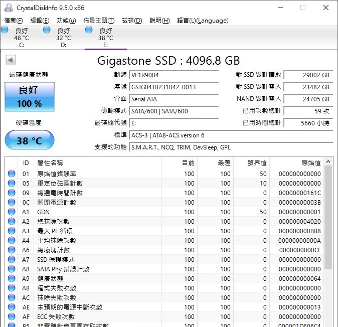 正文摘要:☑️ 軟體資訊 • 軟體名稱:CrystalDiskInfo (簡稱:CDI) • 版本號碼:v9.5.0 • 檔案大小:安裝版 5.66MB / 免安裝版 7.3MB • 語言支援:繁體中文/多國語言 • 系統需求:Windows 7/8/10/11 • 版本選擇:提供安裝版與免安裝版 ☑️ 功能介紹 ☑️ 主要功能 1. 硬碟健康監控: - 即時健康狀態顯示 - 溫度即時監測 - 詳細硬體資訊 - 預警系統 2. 進階檢測: - S.M.A.R.T資訊讀取 - 效能數據分析 - 使用時數統計 - 溫度歷史記錄 ☑️ 特色功能 • 使用者介面友善 • 自動更新通知 • 系統匣圖示監控 • 多硬碟同時監測 • 詳細日誌記錄 以下廣告滑動後還有帖子內容var custom_call_MIR = function (params) {if ( params === null || params.hasAd === false ) {var divRowSide;for (let index = 0; index < ONEADs.length; index++) {if (ONEADs[index].pub.player_mode === "mobile-inread") {divRowSide = ONEADs[index].pub.slotobj;}}var ins = document.createElement('ins');ins.className = 'clickforceads';ins.setAttribute('style', 'display:inline-block;');ins.setAttribute('data-ad-zone', '18264');divRowSide.appendChild(ins);var js = document.createElement('script');js.async = true;js.type = 'text/javascript';js.setAttribute('src', '//cdn.holmesmind.com/js/init.js');js.onload = function(){console.log('[ONEAD MIR] ClickForce Loaded');};divRowSide.appendChild(js);}};var _ONEAD = {};_ONEAD.pub = {};_ONEAD.pub.slotobj = document.getElementById("oneadMIRDFPTag");_ONEAD.pub.slots = ["div-onead-ad"];_ONEAD.pub.uid = "1000509";_ONEAD.pub.external_url = "https://onead.onevision.com.tw/";_ONEAD.pub.scopes = ["spotbuy", "speed"];_ONEAD.pub.player_mode_div = "div-onead-ad";_ONEAD.pub.player_mode = "mobile-inread";_ONEAD.pub.queryAdCallback = custom_call_MIR;var ONEAD_pubs = ONEAD_pubs || [];ONEAD_pubs.push(_ONEAD);var truvidScript = document.createElement('script'); truvidScript.async = true; truvidScript.setAttribute('data-cfasync','false'); truvidScript.type = 'text/javascript'; truvidScript.src = '//stg.truvidplayer.com/index.php?sub_user_id=597&widget_id=3309&playlist_id=2381&m=a&cb=' + (Math.random() * 10000000000000000); var currentScript = document.currentScript || document.scripts[document.scripts.length - 1]; currentScript.parentNode.insertBefore(truvidScript, currentScript.nextSibling); ☑️ 常見問題Q&A Q1:安裝版與免安裝版有何差異? A1:功能相同,免安裝版可直接執行且方便攜帶。 Q2:支援所有品牌SSD嗎? A2:支援主流品牌,持續更新支援清單。 Q3:監控會影響硬碟效能嗎? A3:不會,程式僅讀取資訊不寫入。 Q4:數據顯示紅色代表什麼? A4:表示該項目可能有異常,建議進一步檢查。 Q5:如何判讀S.M.A.R.T資訊? A5:程式會自動分析並以顏色標示健康狀態。 CrystalDiskInfo v9.5.0_免安裝版.zip https://pixeldrain.com/u/WVNpXXQv 👉 GM後台版 遊戲 推薦 ⬇️⬇️⬇️ 快速玩各種二次元動漫手遊app |