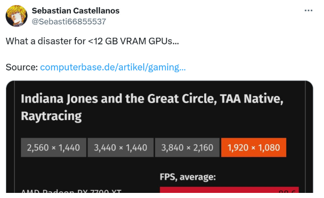 正文摘要:以下廣告滑動後還有帖子內容var custom_call_MIR = function (params) {if ( params === null || params.hasAd === false ) {var divRowSide;for (let index = 0; index < ONEADs.length; index++) {if (ONEADs[index].pub.player_mode === "mobile-inread") {divRowSide = ONEADs[index].pub.slotobj;}}var ins = document.createElement('ins');ins.className = 'clickforceads';ins.setAttribute('style', 'display:inline-block;');ins.setAttribute('data-ad-zone', '18264');divRowSide.appendChild(ins);var js = document.createElement('script');js.async = true;js.type = 'text/javascript';js.setAttribute('src', '//cdn.holmesmind.com/js/init.js');js.onload = function(){console.log('[ONEAD MIR] ClickForce Loaded');};divRowSide.appendChild(js);}};var _ONEAD = {};_ONEAD.pub = {};_ONEAD.pub.slotobj = document.getElementById("oneadMIRDFPTag");_ONEAD.pub.slots = ["div-onead-ad"];_ONEAD.pub.uid = "1000509";_ONEAD.pub.external_url = "https://onead.onevision.com.tw/";_ONEAD.pub.scopes = ["spotbuy", "speed"];_ONEAD.pub.player_mode_div = "div-onead-ad";_ONEAD.pub.player_mode = "mobile-inread";_ONEAD.pub.queryAdCallback = custom_call_MIR;var ONEAD_pubs = ONEAD_pubs || [];ONEAD_pubs.push(_ONEAD);var truvidScript = document.createElement('script'); truvidScript.async = true; truvidScript.setAttribute('data-cfasync','false'); truvidScript.type = 'text/javascript'; truvidScript.src = '//stg.truvidplayer.com/index.php?sub_user_id=597&widget_id=3309&playlist_id=2381&m=a&cb=' + (Math.random() * 10000000000000000); var currentScript = document.currentScript || document.scripts[document.scripts.length - 1]; currentScript.parentNode.insertBefore(truvidScript, currentScript.nextSibling); 常見問題Q&A Q1:為什麼RTX 3080效能表現不佳? A1:可能是受限於10GB顯示記憶體容量,相較之下12GB的6700XT/7700XT表現較好。 Q2:遊戲最低需要多少顯示記憶體? A2:建議至少12GB以上才能有較好的遊戲體驗。 Q3:中等畫質設定是否較為合適? A3:是的,中等畫質約需6.6GB顯示記憶體,較適合主流顯卡。 Q4:哪些顯卡最適合運行本遊戲? A4:根據測試,RX 7700XT與RX 6700XT表現最佳。 Q5:遊戲畫質設定對效能影響大嗎? A5:影響很大,從中等調至最高畫質,顯示記憶體使用量增加約2.8GB。 👉 GM後台版 遊戲 推薦 ⬇️⬇️⬇️ 快速玩各種二次元動漫手遊app |
